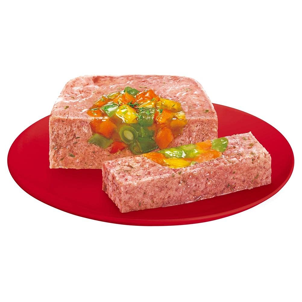 肉類(チキン、ビーフ、家禽等)、野菜類(にんじん、いんげん、パプリカ、ほうれん草)、フィッシュオイル(DHA源)、ひまわり油、チコリー繊維、ビートパルプ、ディル、ガーリックパウダー、マリーゴールド、トマトパウダー、ビタミン類、ミネラル類、タウリン、増粘多糖類、リン酸塩(Na)