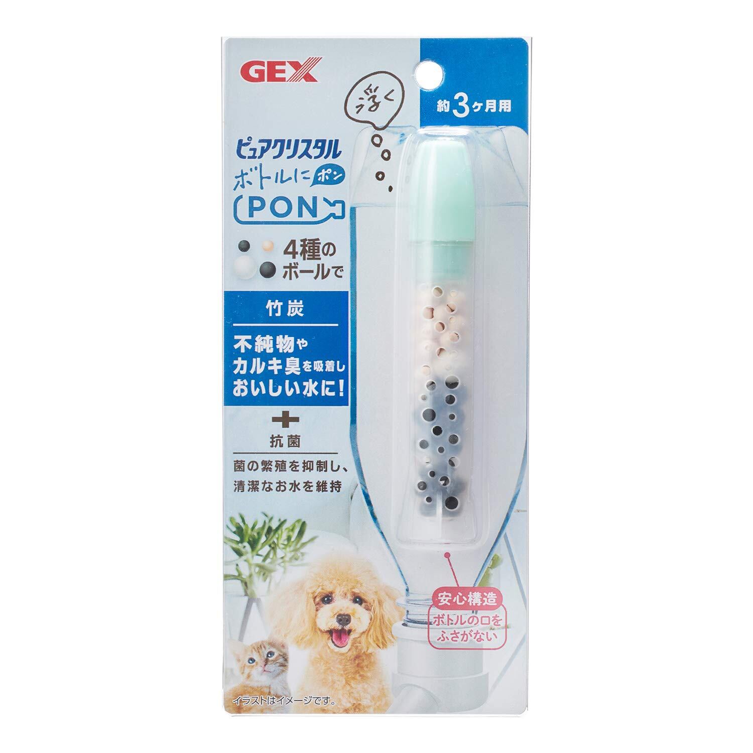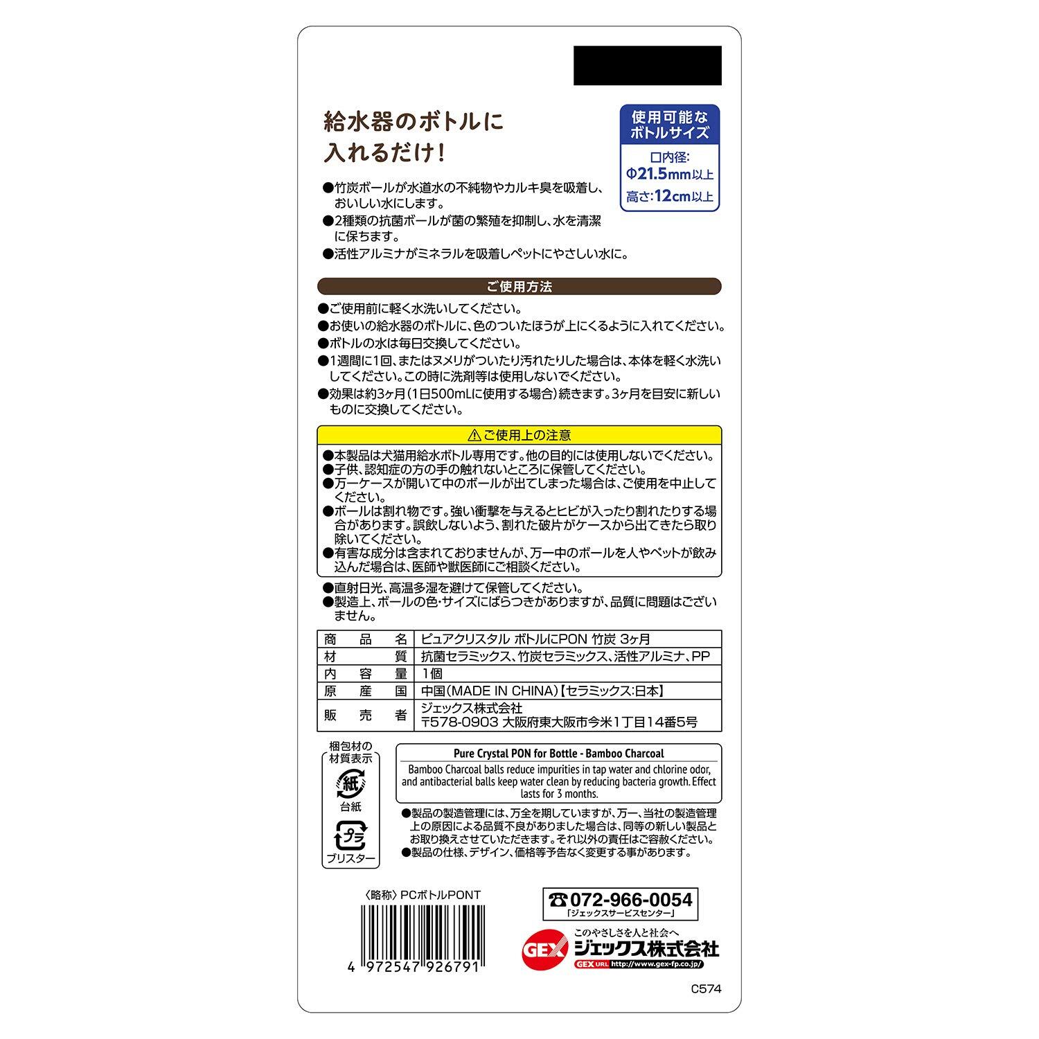 ジェックス GEX ピュアクリスタル ボトルにPON 竹炭 カルキ臭を吸着 抗菌+竹炭セラミックボール配合 ペット用 1個[約3ヵ月分]