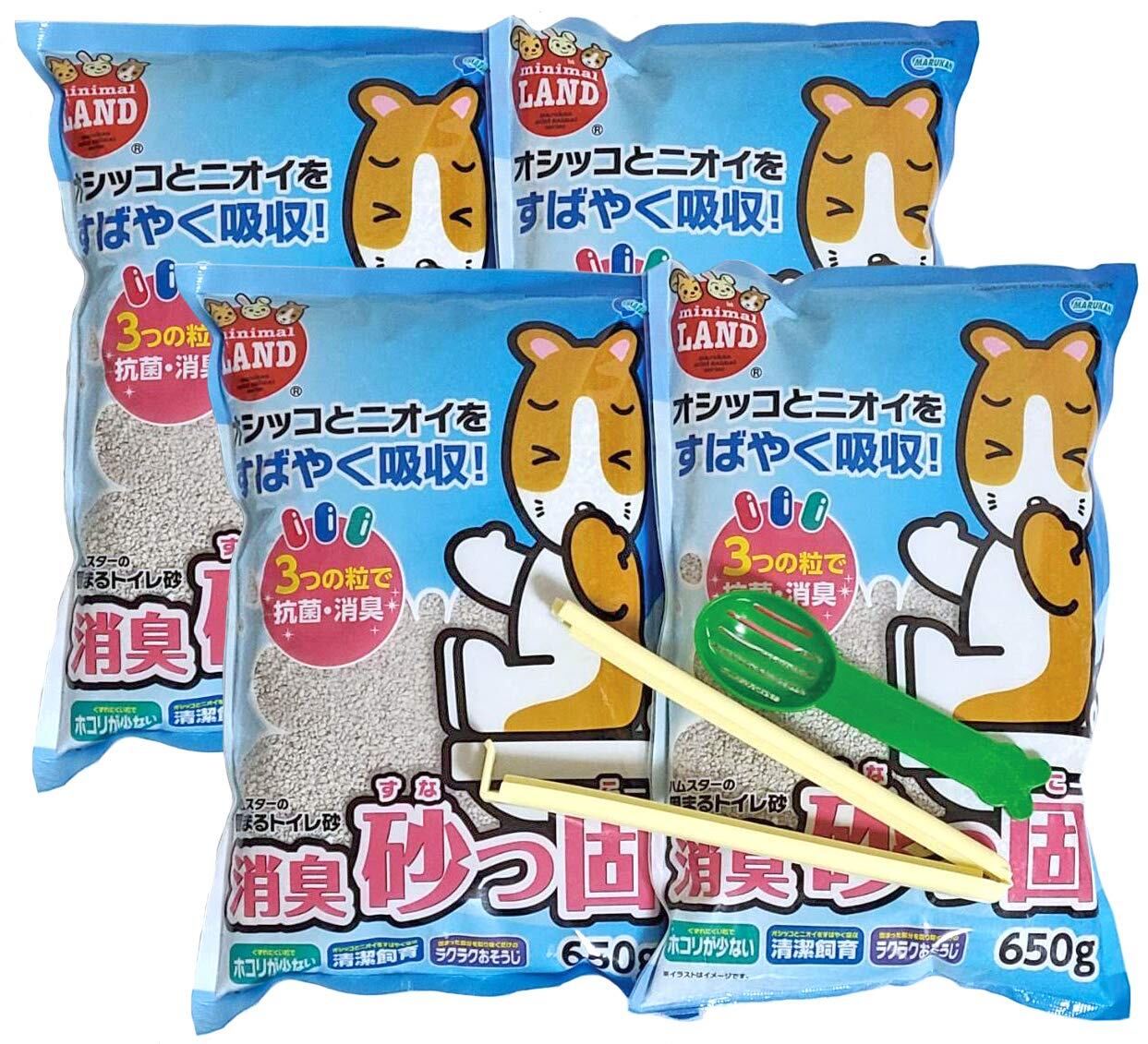 マルカン マルカン 消臭砂っ固 650g ×4袋(袋留めクリップ、トイレ掃除用スプーン付き)小動物用 ハムスター・リス・テグー・モモンガ 砂っ固