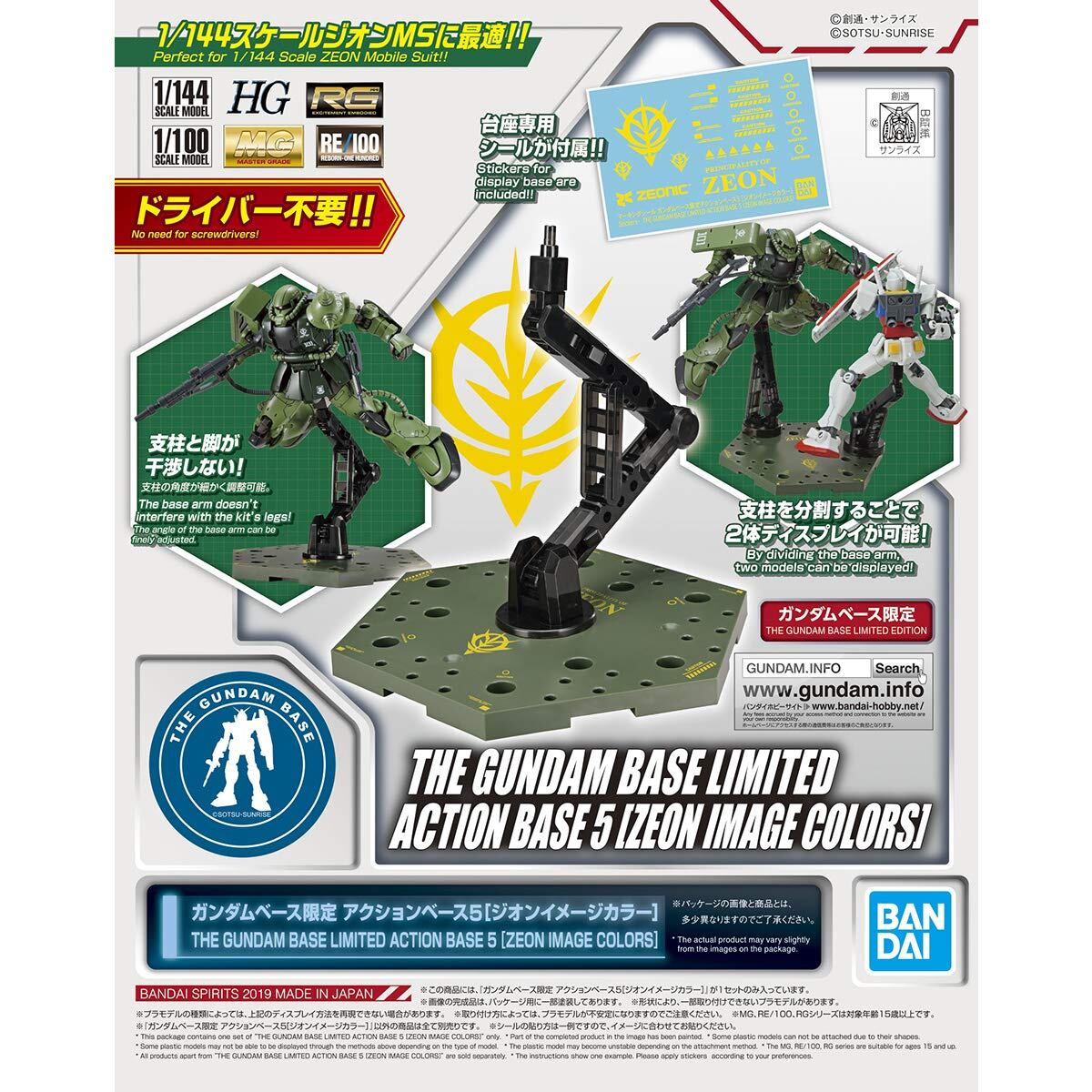 全世界のガンプラファンにむけた、公式ガンプラ総合施設「ガンダムベース」の限定アイテム。 アクションベース5が、ジオン軍MSを展示するのにピッタリなデザインで登場。
