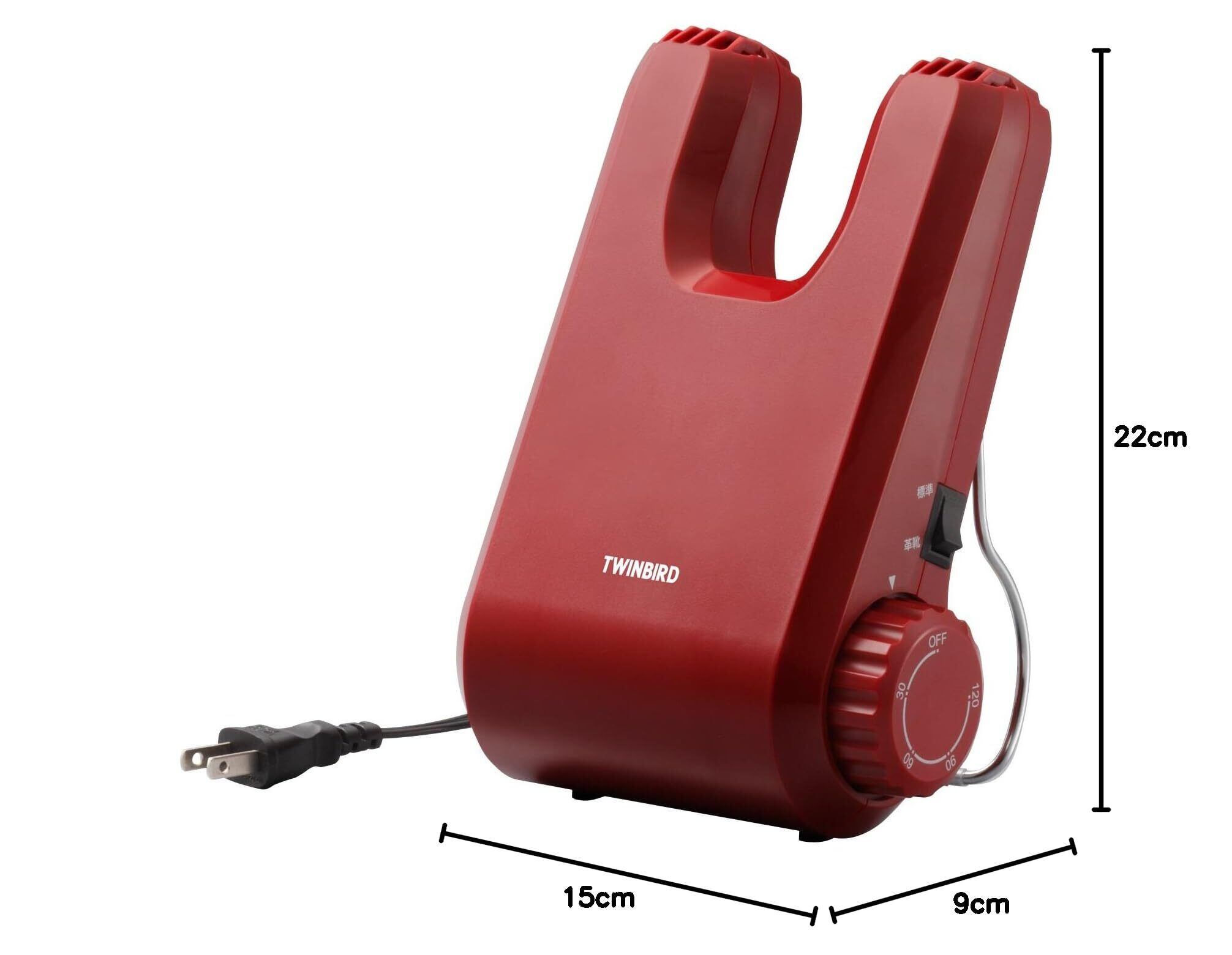 ツインバード 靴乾燥機 シューズドライヤー コンパクト 上履き 革靴 カビ ニオイ防止 脱臭 タイマー機能 レッド SD-4546R