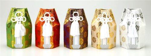 内部【(厚口:約0.5mm).(素材:ボール紙) 】: 外部【(布:約0.8mm).(生地:ポリエステル、レーヨン).(飾り房:レーヨン).(縛り紐:レーヨン).(ネーム蓮台シール:紙製)】