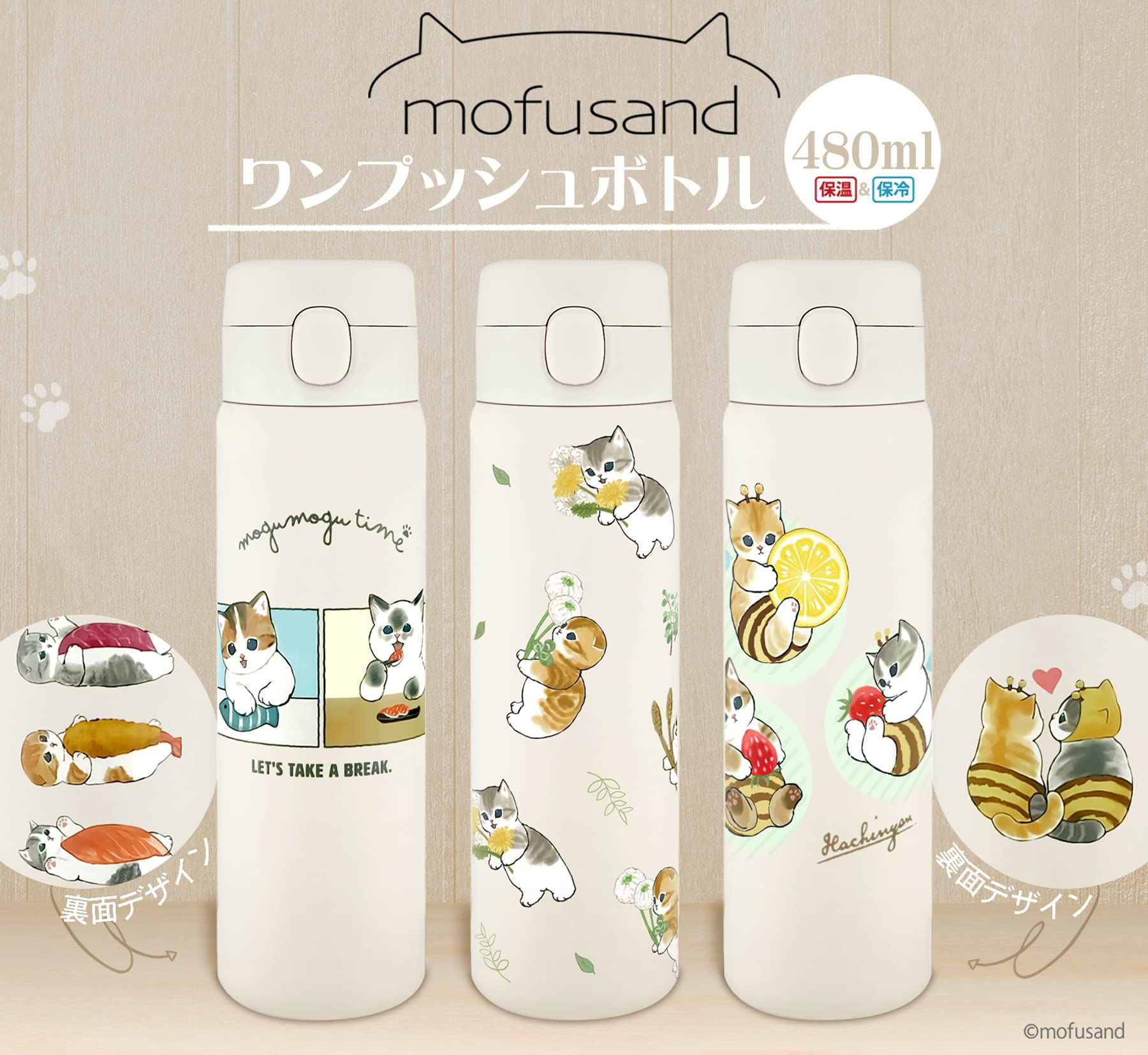 猫愛があふれる「もふもふ」な猫のイラストを生み出す作家ぢゅのデザインが特徴の使いやすいワンプッシュタイプのステンレスボトル。ワンプッシュでフタがオープンでき、片手で楽々操作できます。もちろん安心安全のロック付き。