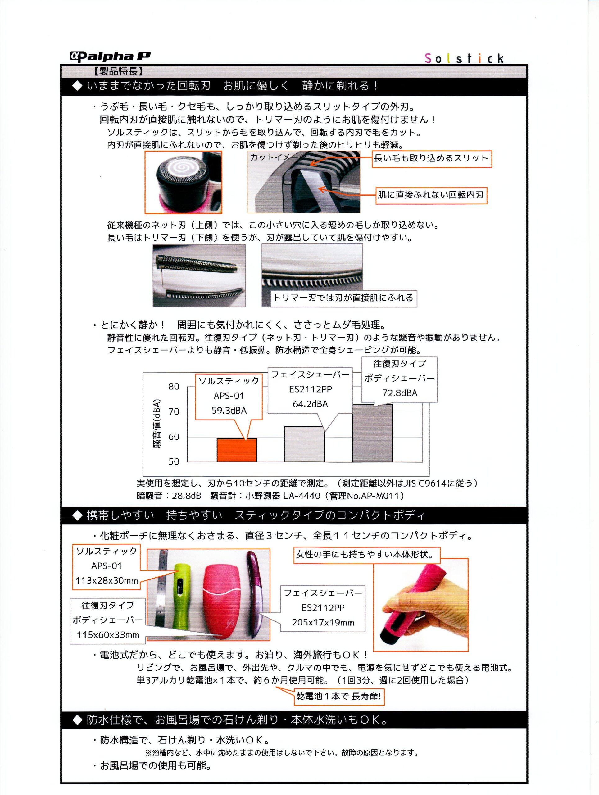 ●いつでもどこでもうぶ毛ケア。 ・急なお出かけやお泊まり前に。気づいた時にさっと処理。 ・顔のうぶ毛から、ビキニラインまでお使いいただけます。 ・刃がお肌に直接触れないのでヒリヒリしにくい! 剃りにくい毛もしっかり取り込み回転刃でスムーズにカット。 ・防水構造で水洗い、石鹸剃りOK。 ■使用電池:単3形アルカリ乾電池(LR6)×1本(別売)