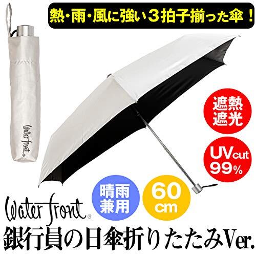 銀行員の日傘折りたたみVer.(親骨60cm ZIP 日本テレビ 日傘男子 男女兼用 晴雨兼用傘 熱中症対策 waterfront 99%紫外線カット UVカット 遮光性 遮熱性 耐風 ウォーターフロント)