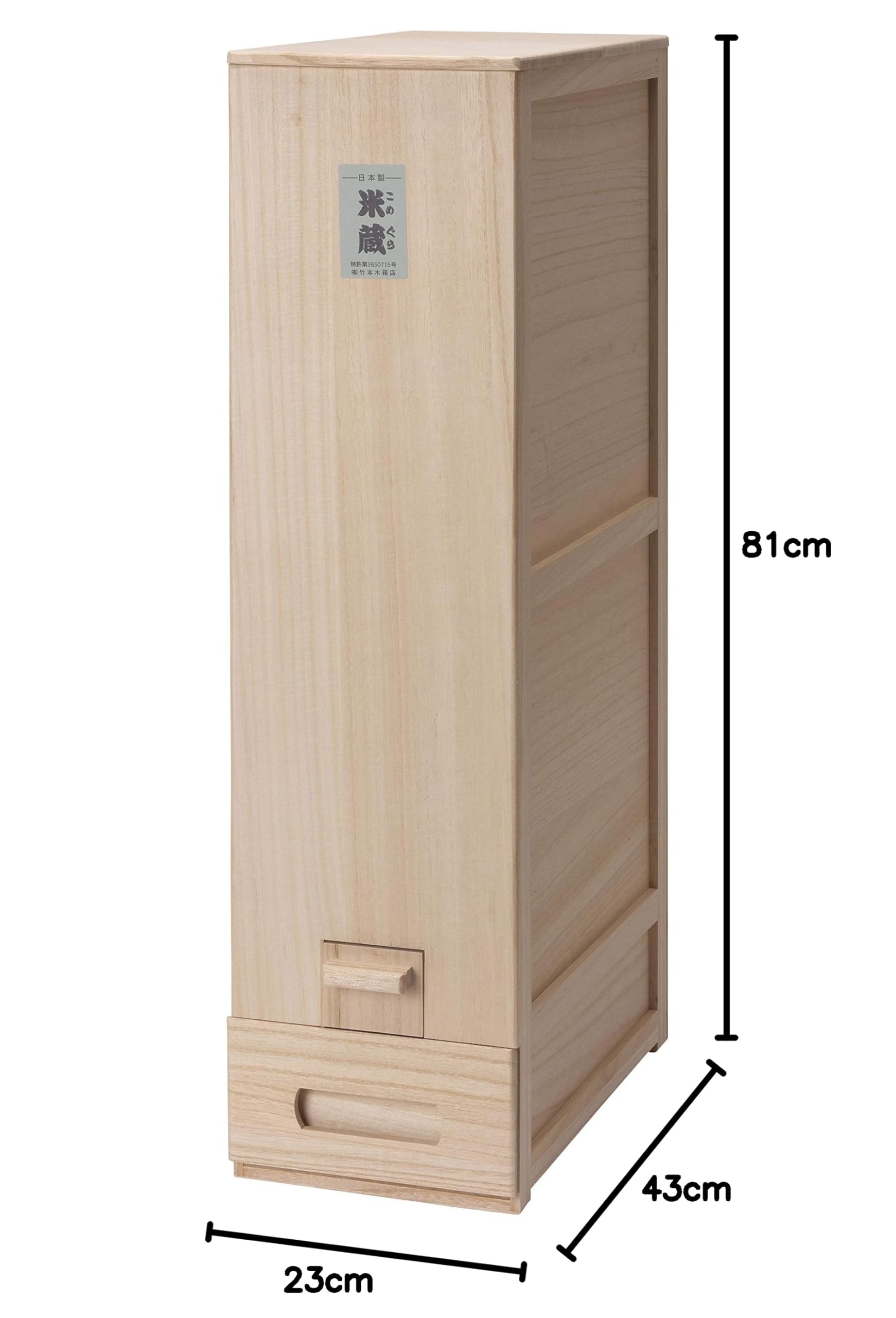 竹本木箱店 総桐天然木の計量米びつ 「米蔵」 30kg用