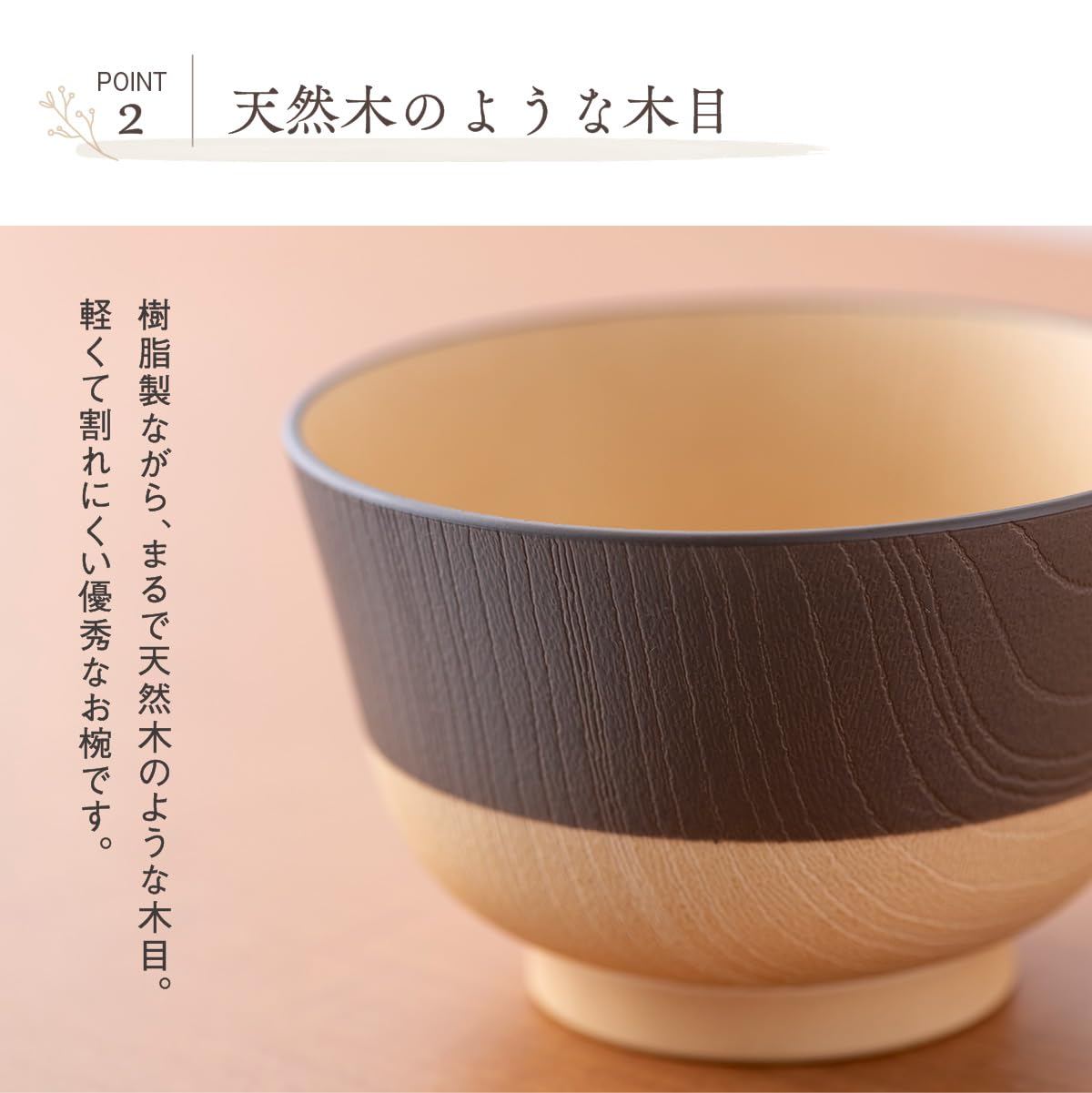 【本物のような木目を再現】樹脂製ながら、まるで天然木のような木目。軽くて割れにくい優秀なお椀です。シニアの方にもおすすめです。