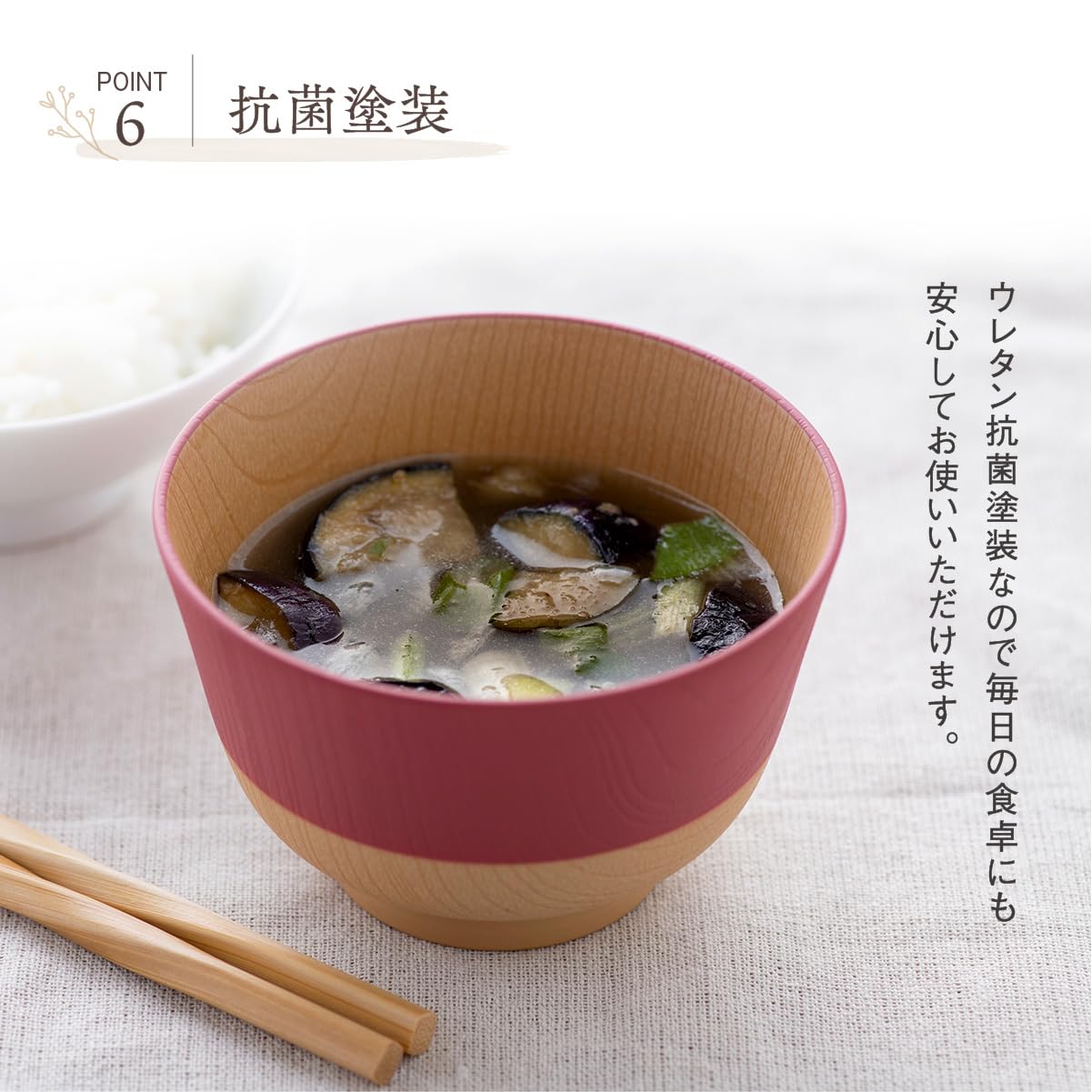 【抗菌塗装】ウレタン抗菌塗装なので、毎日の食卓にも安心してお使いいただけます。
