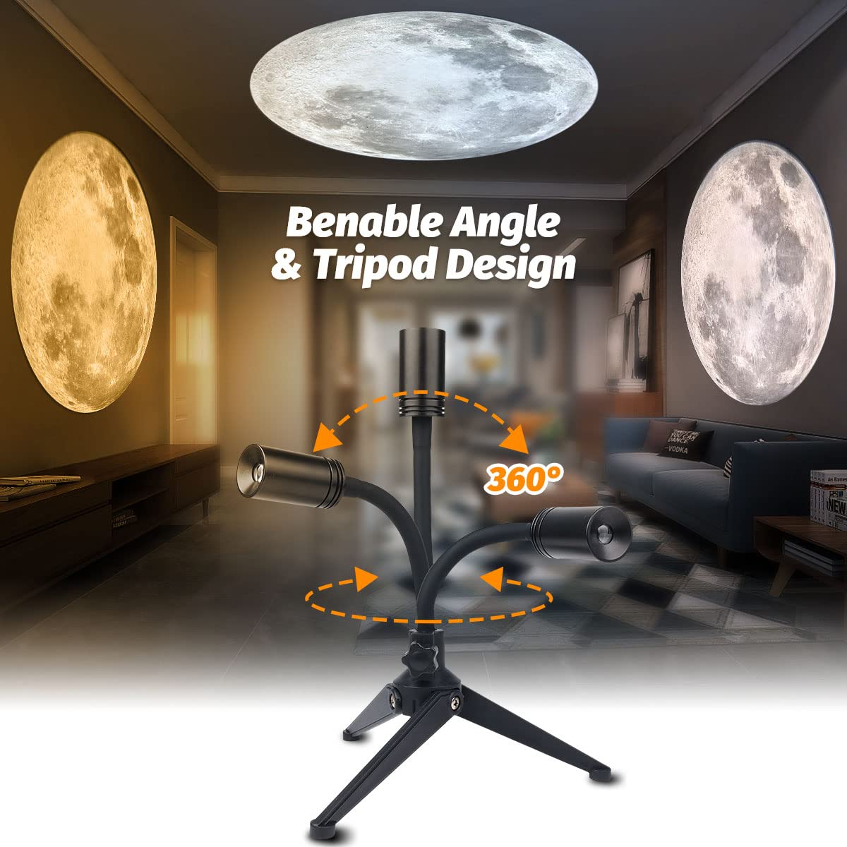 【数量限定】アップグレード 色あせない ムーンプロジェクター ナイトライト USB充電ムーンランプ 3色の照明カラー 角度 曲げられる明るさ 調節可能な月の雰囲気プロジェクター 子供へのギフトに 月が好きな人 壁 天井の装飾