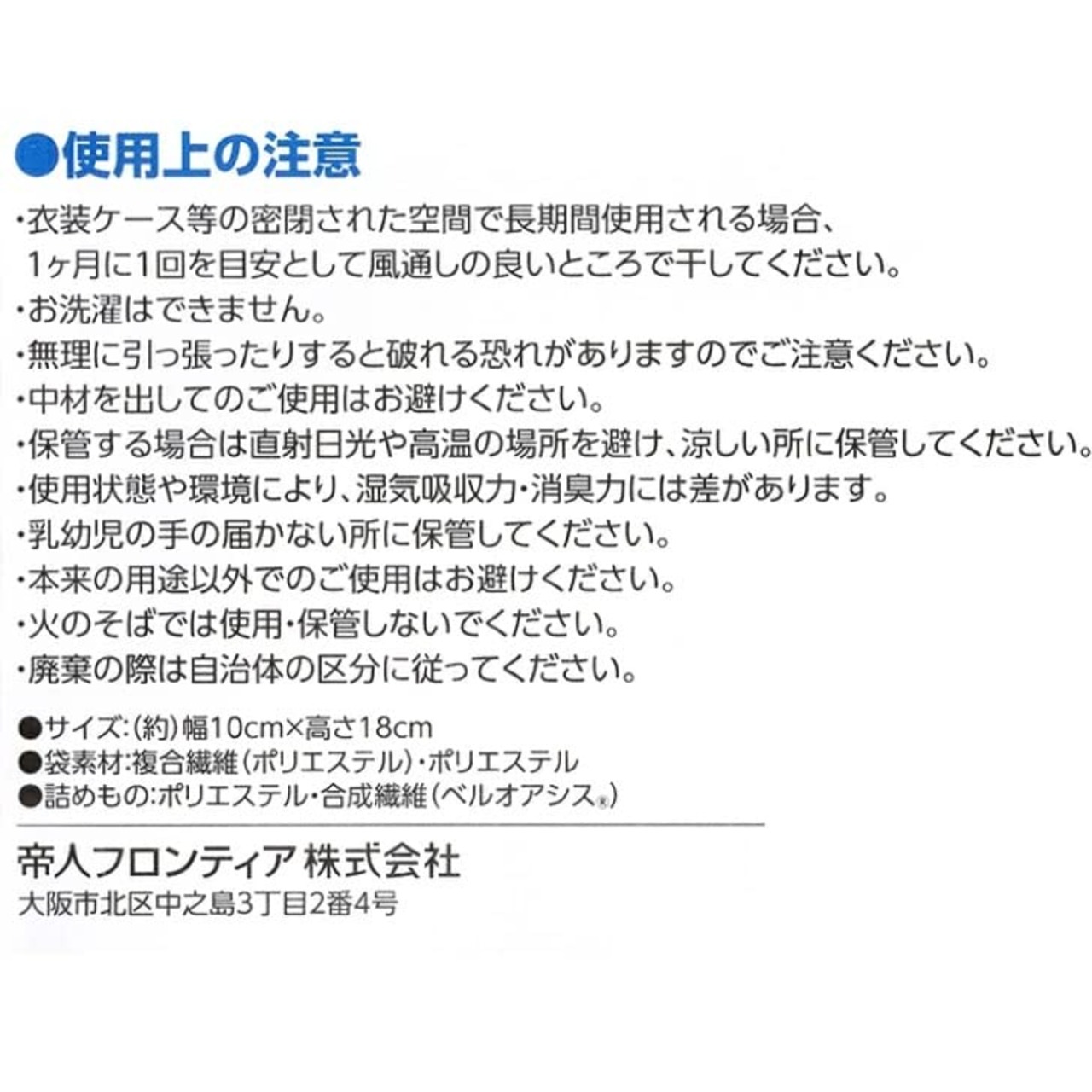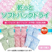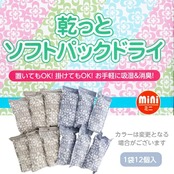 置いてもOK!掛けてもOK!お手軽に吸湿&消臭! 【TEIJIN っと乾っとソフトパックドライ mini 12個入】 テイジンの高吸湿繊維「ベルオアシス」を使用した除湿材です。 周囲が高湿度の時?吸湿します 周囲が低湿度の時?放湿します くり返しご使用いただくことができます。 密閉された空間での長期間使用の場合は1か月に1回を目安として風通しの良いところで干してください。 幅10×高さ18cmのミニサイズなので靴の中やカバンに入れて使用できます。 たっぷり12個入りなので、生活の中で湿気が気になる様々な場所でご使用頂けます。