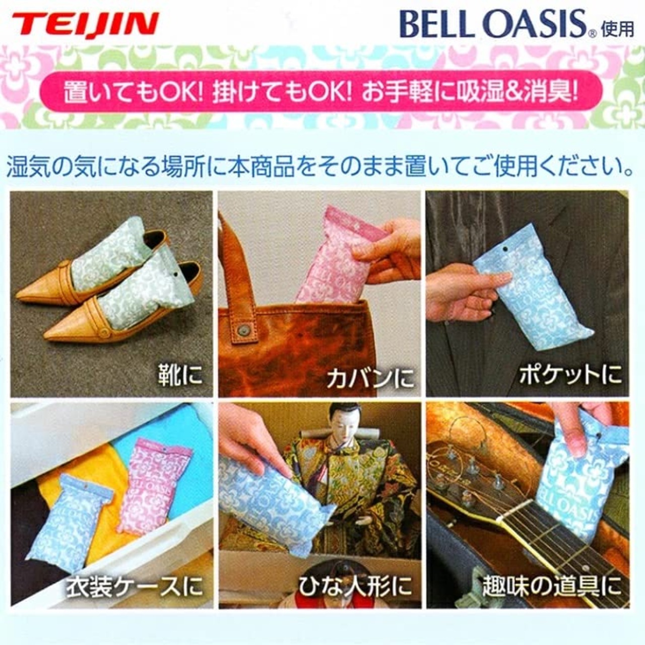 【人気商品】テイジン TEIJIN 乾っとソフトパックドライ ミニ 12個入 高吸湿繊維 ベルオアシス 除湿材 汗のニオイを消臭 靴 カバン ポケット 衣装ケース ひな人形 楽器 BELL OASIS® mini