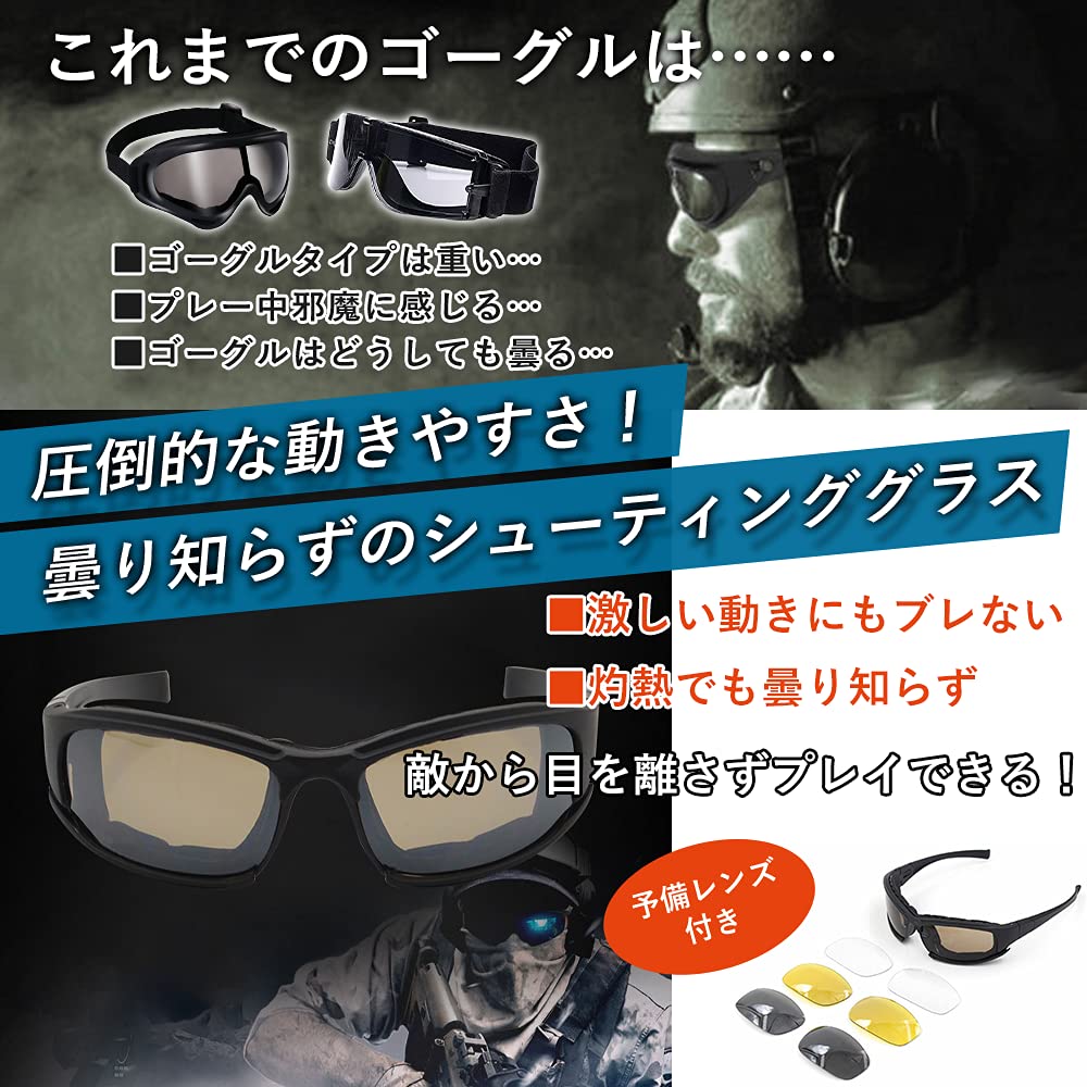 <敵を一掃できる!>着け心地抜群!曇り知らず!装着していることを忘れるくらい快適なサバゲーシューティンググラスなら、敵から目を放さずにプレーに集中できます。ライバルに差をつけて生き残ろう!
