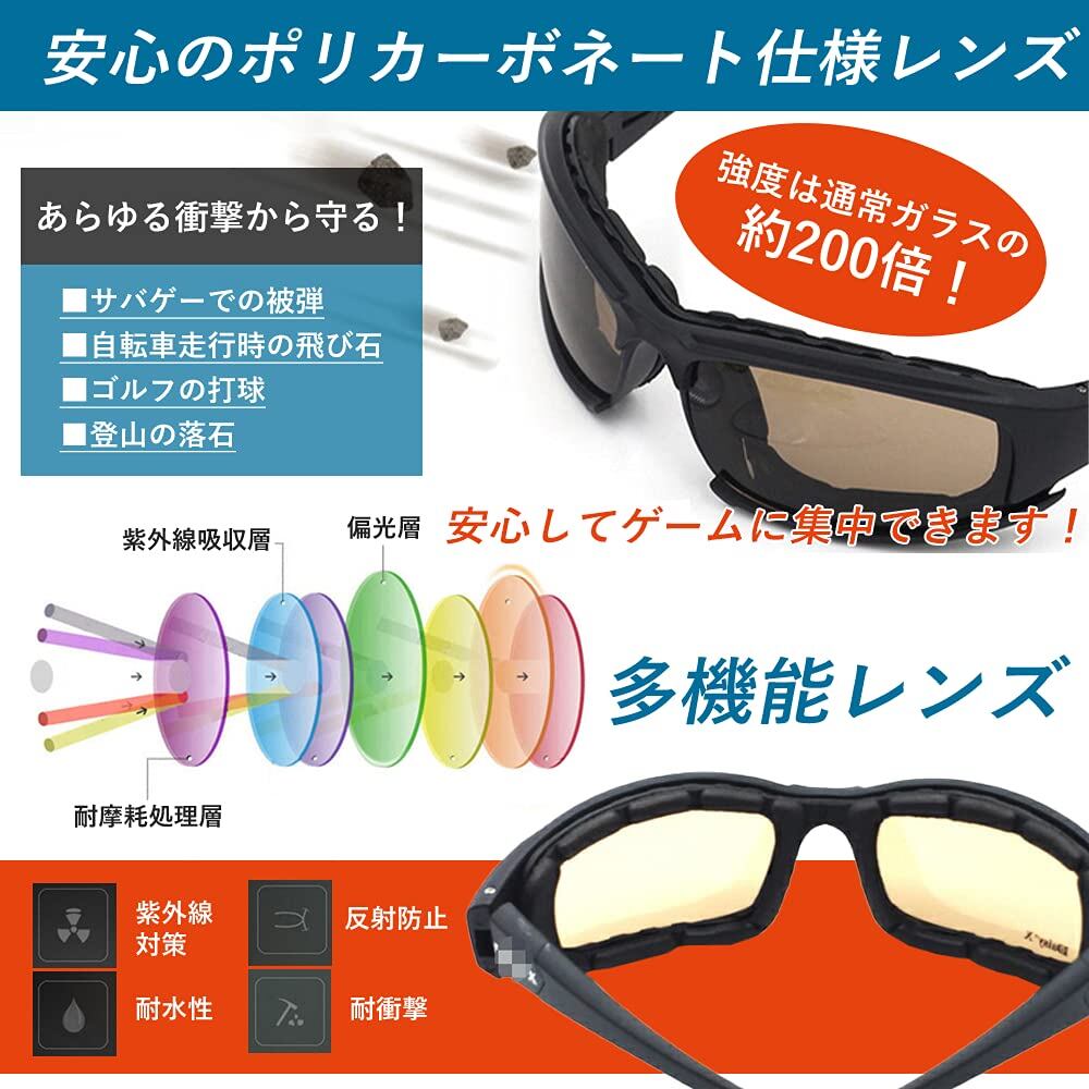 AQULAN サバゲー ゴーグル シューティンググラス 曇らない 4種レンズ付き