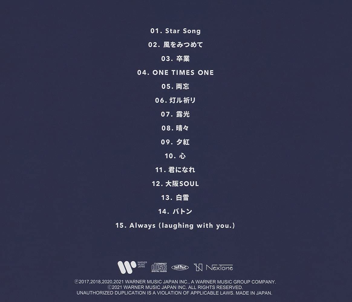 2017年の「心」から、今年7月7日リリースの「両忘」までのシングルに加え、新曲4曲を収録。