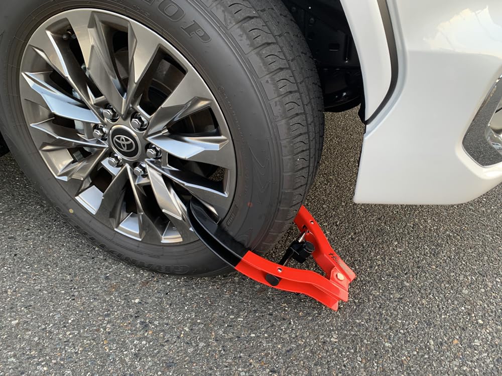 数秒で簡単装着!HORNETのロゴが目立つ赤色ベースのタイヤロック
