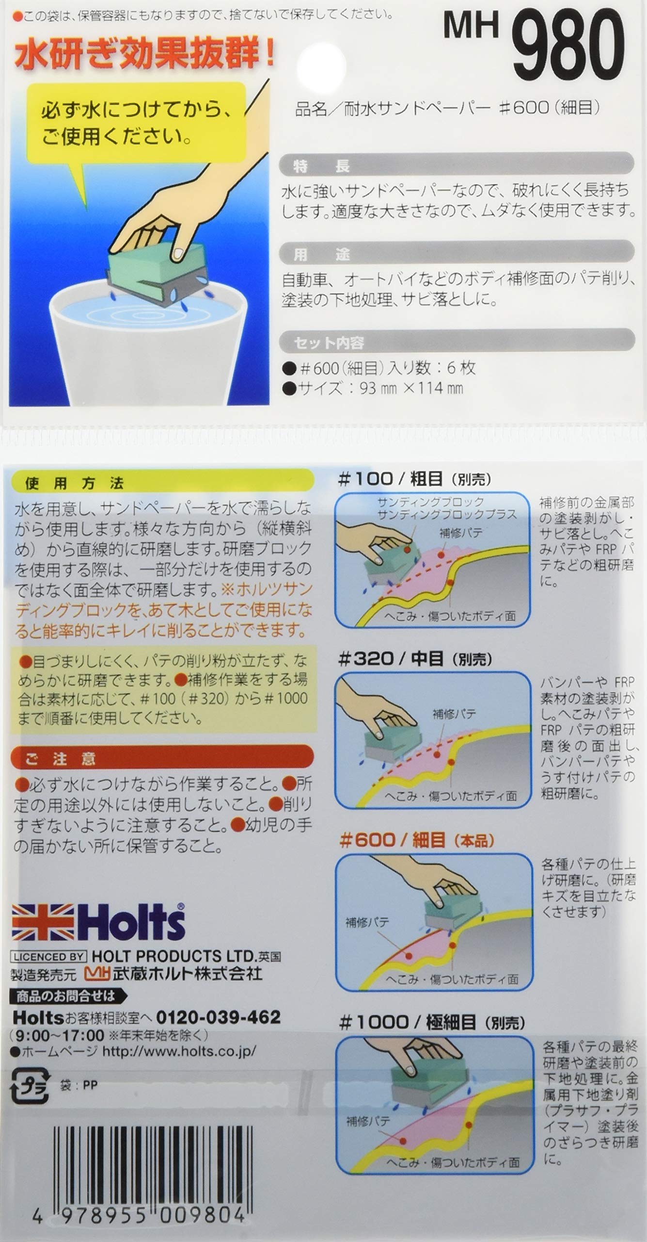 ホルツ 補修用品 耐水サンドペーパー #600 細目 6枚入 Holts MH980