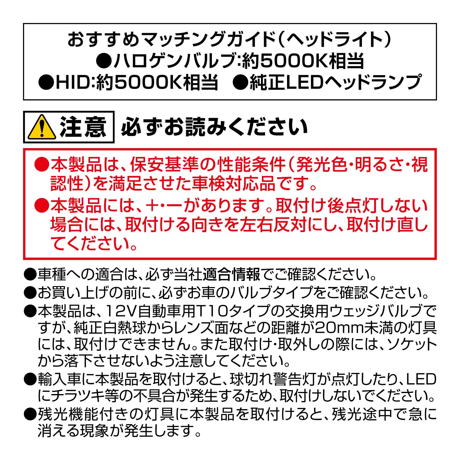 ●色温度:5700K/全光束:120ルーメン/消費電力:0.81W/仕様電圧:DC12V/車検対応