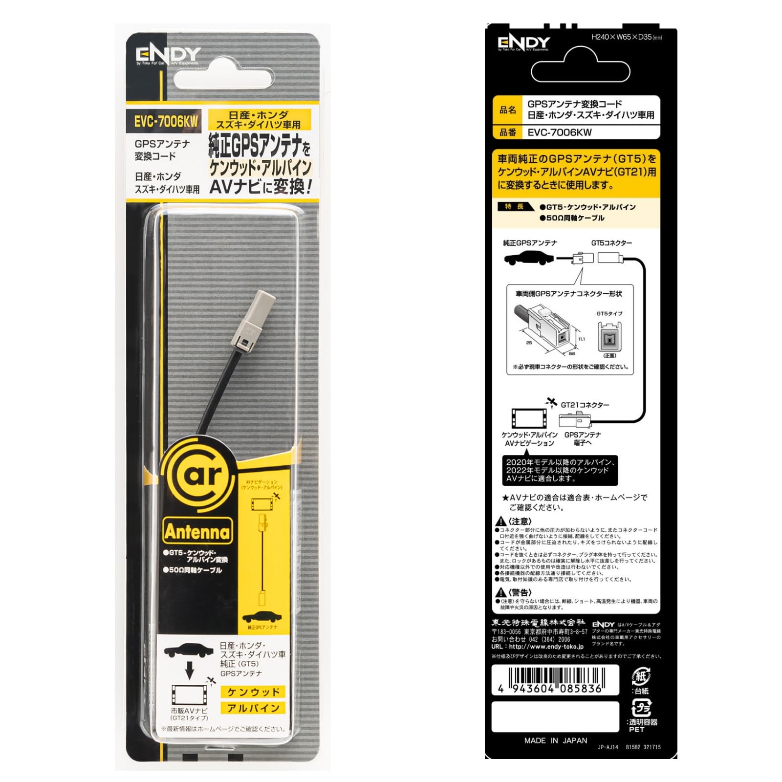 ENDY EVC-7006KW GPSアンテナ変換コード ケンウッド/アルパイン 用 日産・ホンダ・スズキ・ダイハツ車適合