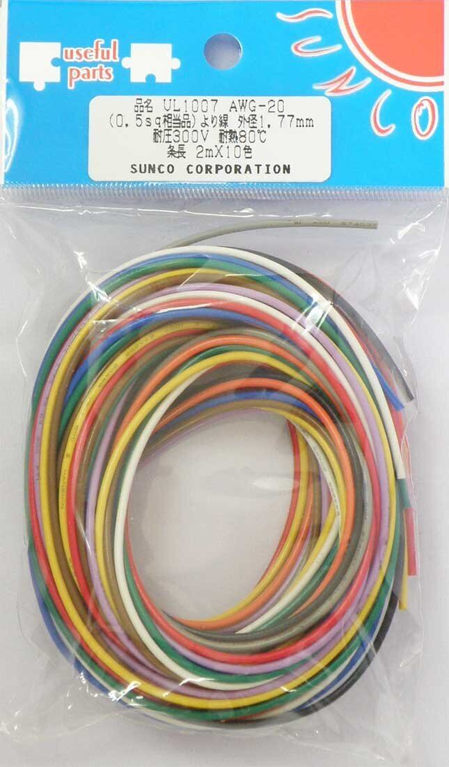 サンコー電商 UL1007 AWG20 耐熱ビニル絶縁電線 10色 (2m×10色) 黒白赤黄緑青茶橙灰紫 (サンコー)