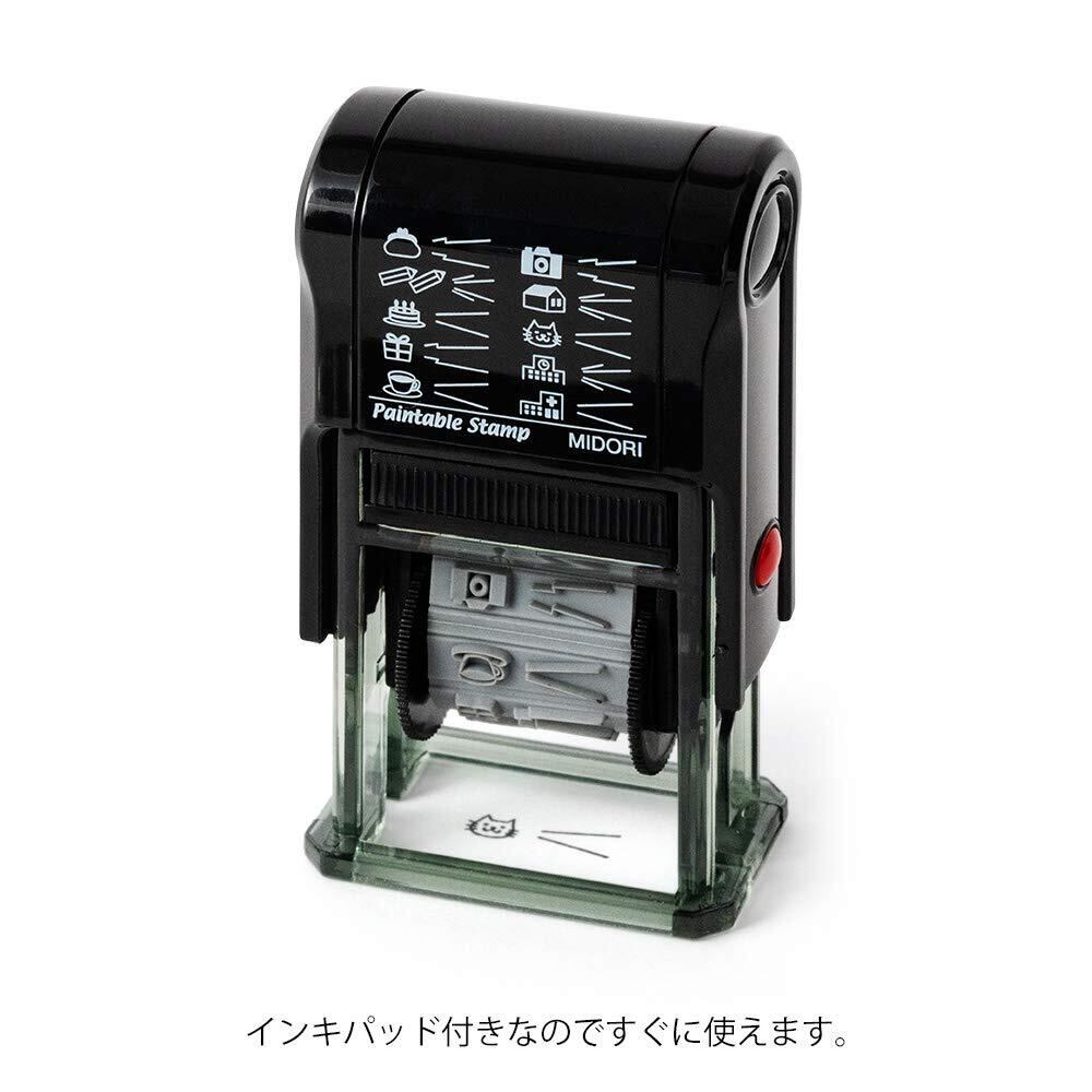 回転して柄を選べ、ノートやダイアリーなどを簡単にデコレーションできる、楽しいスタンプです。