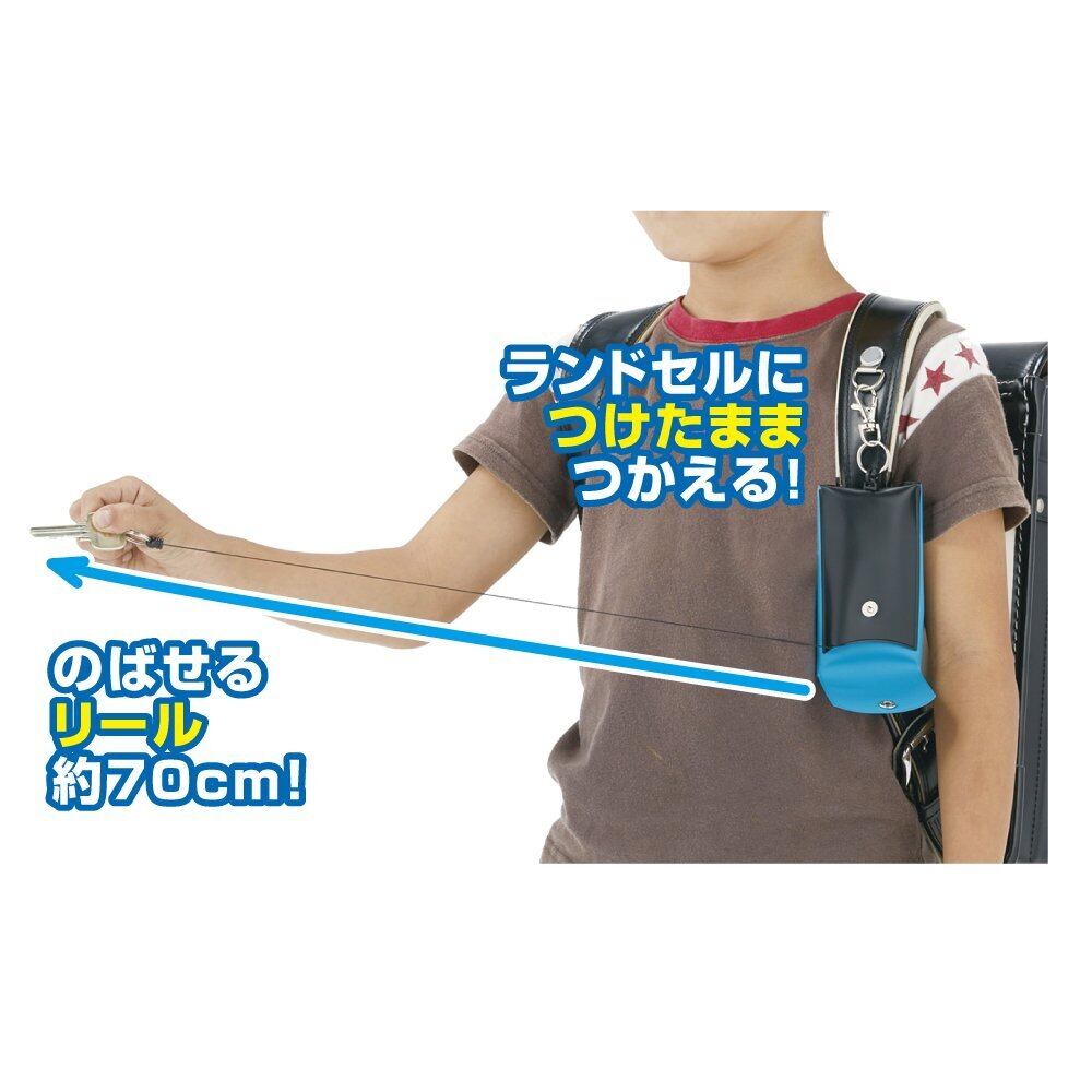 約70cm伸びるリールつき。鍵を毎回ポケットやランドセルから取り出す必要がありません。