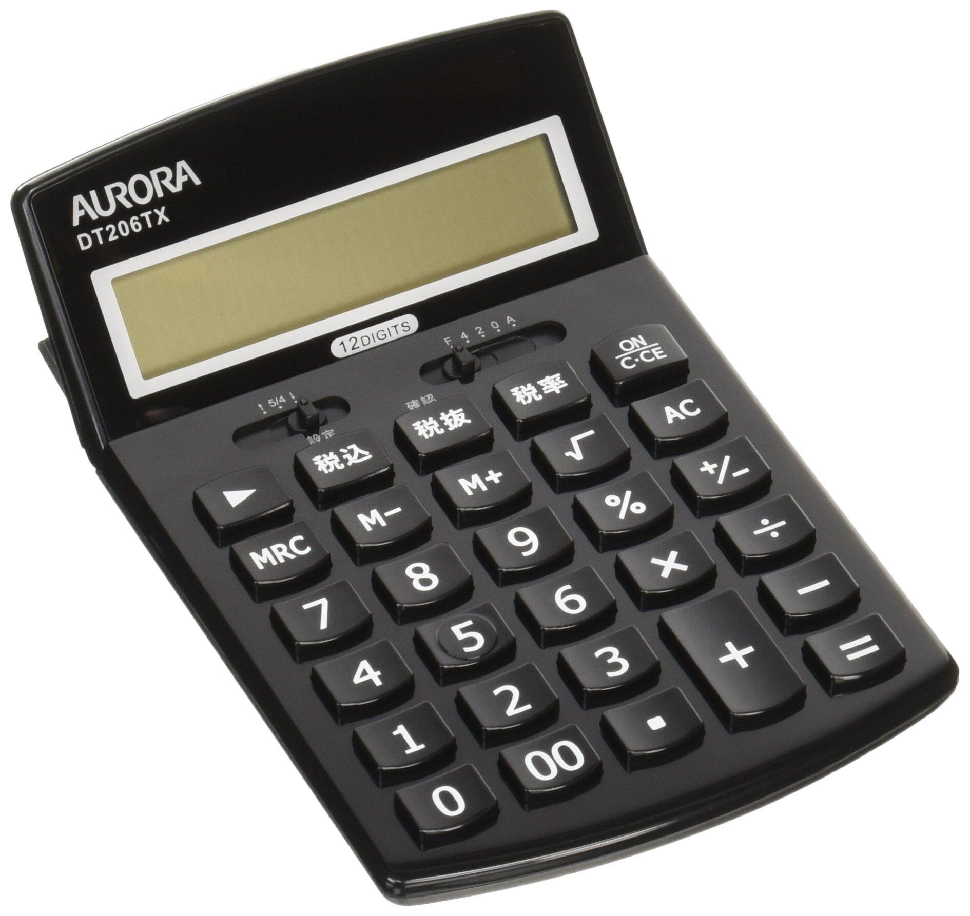 オーロラジャパン 中型卓上電卓 税計算機能付き ブラック DT206TXB