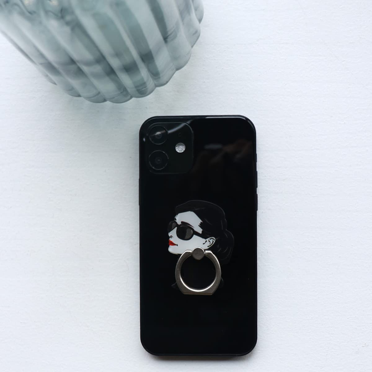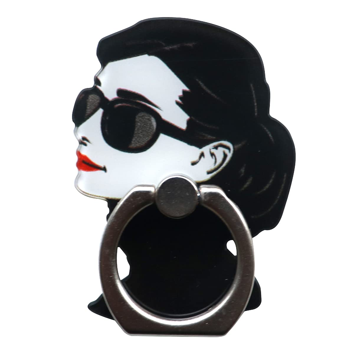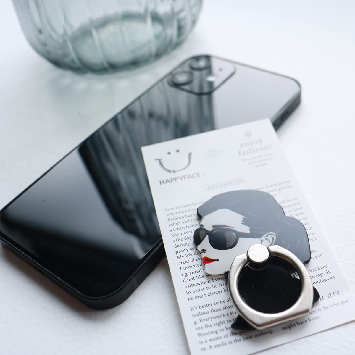 オードリー風のイラストも存在感抜群!おしゃれさと実用性を兼ね備えたスマホリングです。 プレゼントやギフトにもオススメ ※貼りつける面の素材・形状によって接着力が弱まる場合があります。