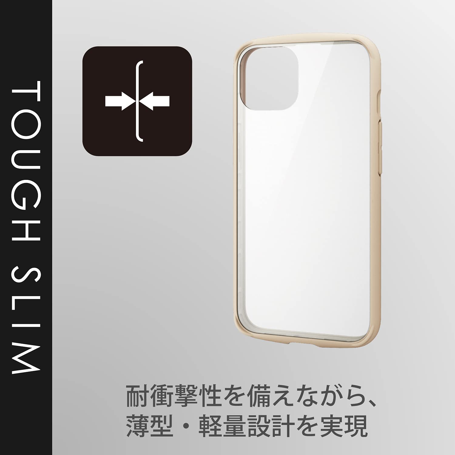 全周に配置した独自設計のエアクッションが衝撃を吸収し、背面には高硬度9Hのガラスを採用した、iPhone 13用TOUGH SLIM LITEケースです。
