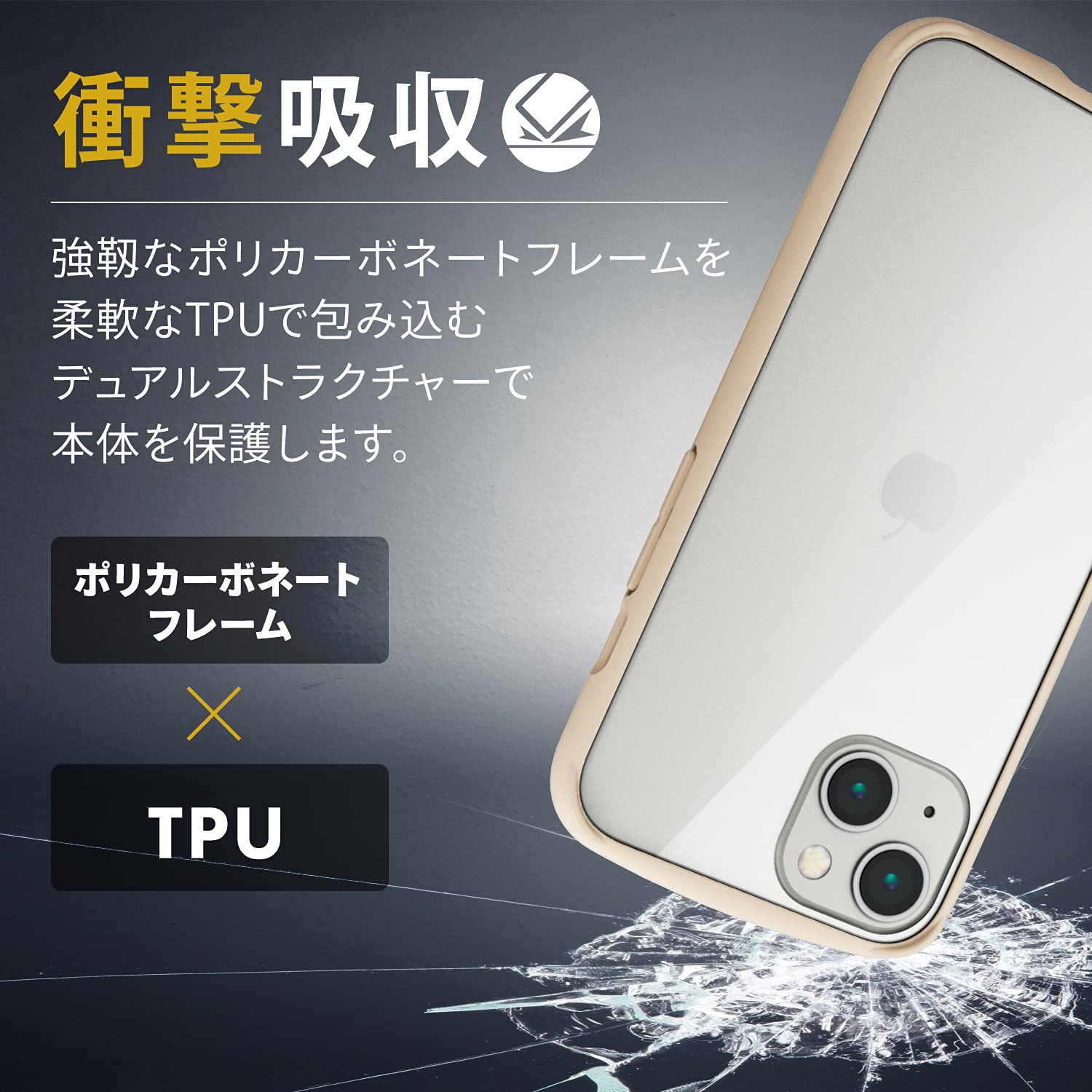 2種の素材を特殊成形しガラスの透明度としなやかな弾力性を合わせ持ったハイブリッドケースです。