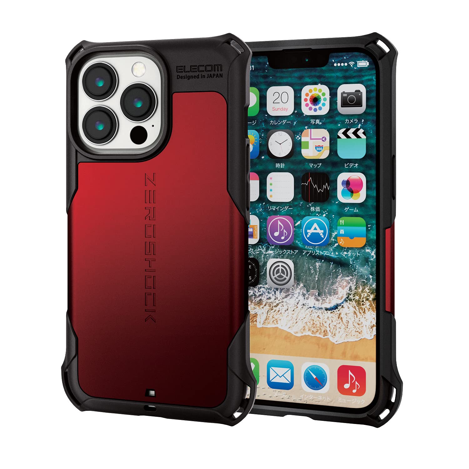 エレコム PM-A21CZERORD iPhone 13 Pro/ハイブリッドケース/ZEROSHOCK/レッド