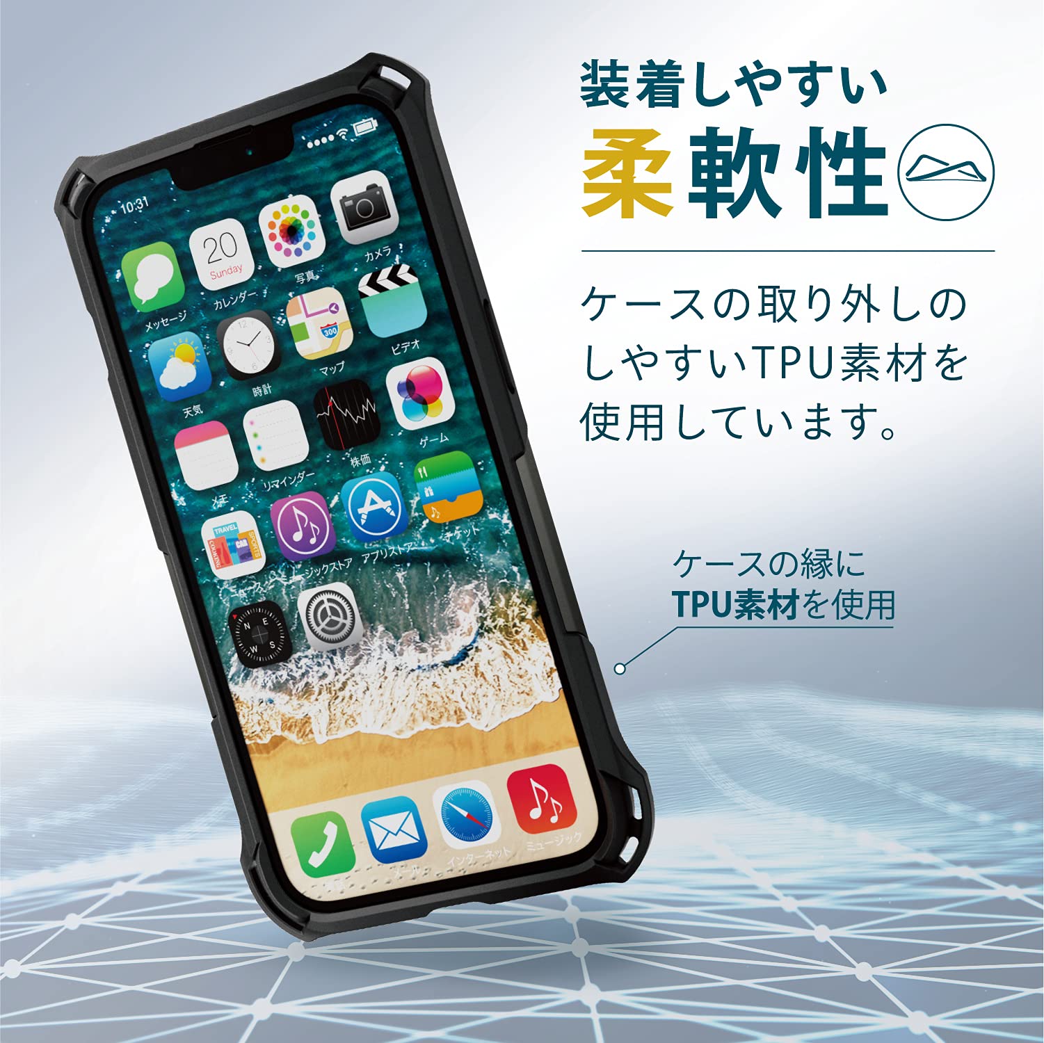 衝撃吸収に適したソフト素材と、それを外側から包むハード素材を使用したダブルレイヤー設計を採用しています。