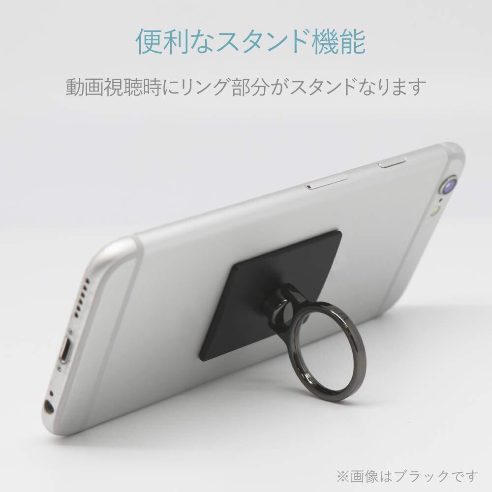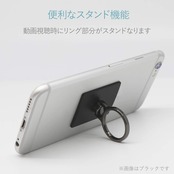 ■背面に貼りつけてスマートフォンの落下を防ぐ、フィンガーリングです。■シンプルで使いやすいスタンダードモデルです。■貼り付け面が薄く、持ったときに気にならない薄型設計です。■持ち方に合わせてリングが回転し、持ちやすい角度に調整可能です。■動画視聴時にリング部分がスタンドになる、便利なスタンド機能がついています。■エレコム社試験をクリアした吸着シートにより、使用中にスマートフォンから剥がれるのを防止します。■iPhone 8/8 Plusにも貼りつけができるiPhone 8/8 Plus専用の透明フィルムがついています。