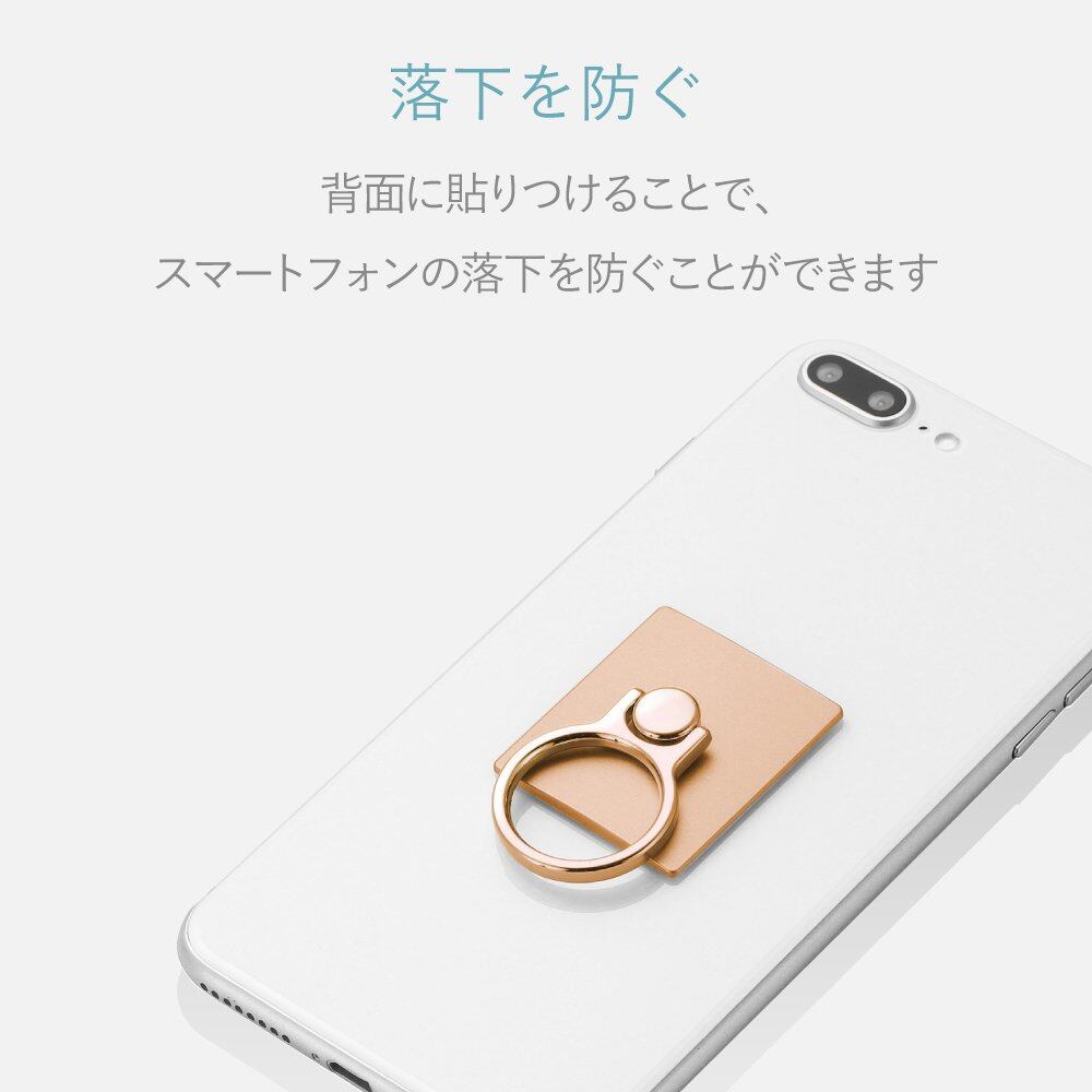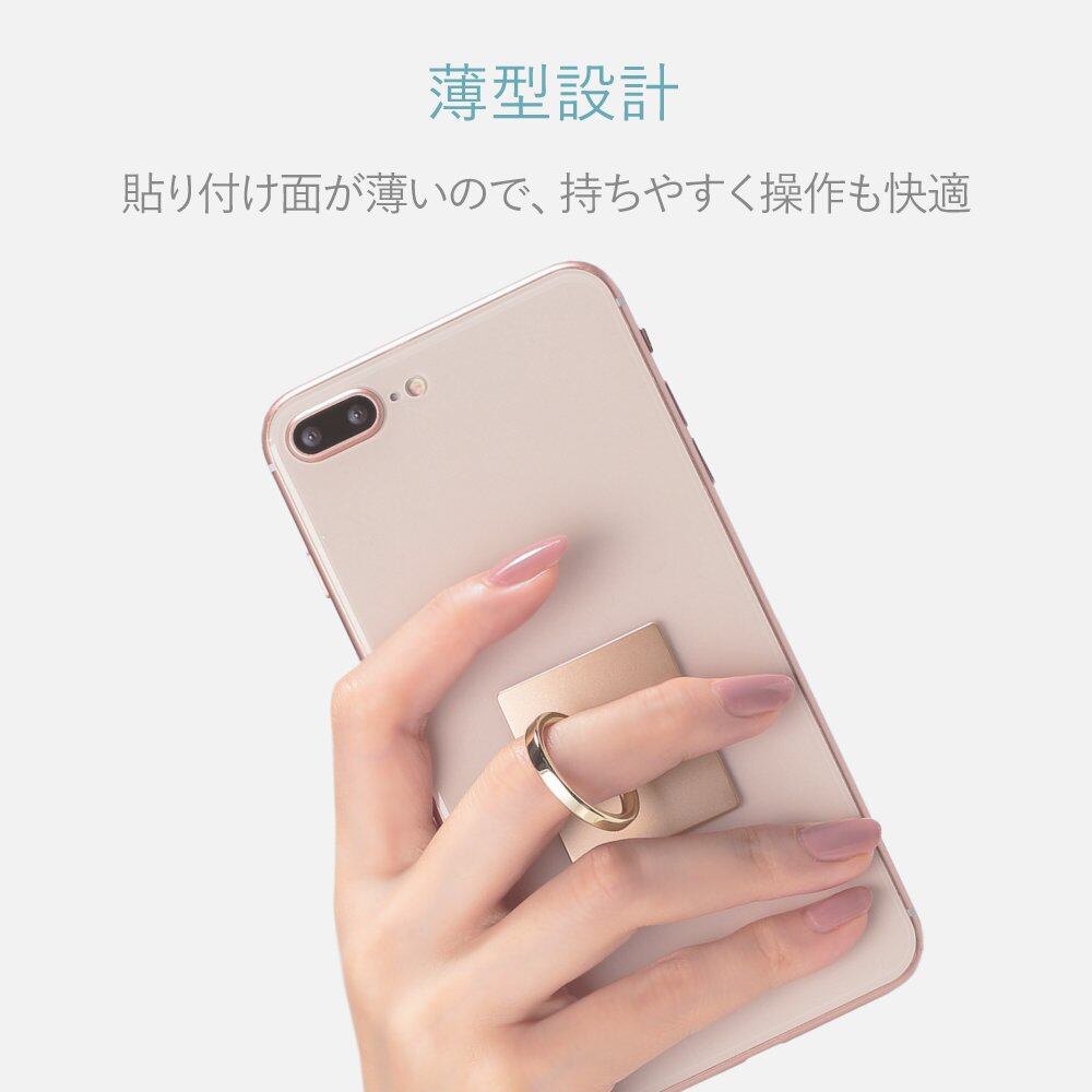 背面に貼りつけてスマートフォンの落下を防ぐ、フィンガーリングです。