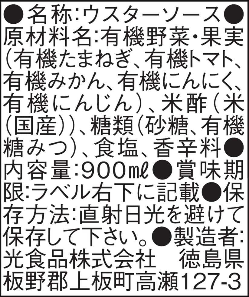 光食品 国内産有機野菜・果実使用 ウスターソース 900ml