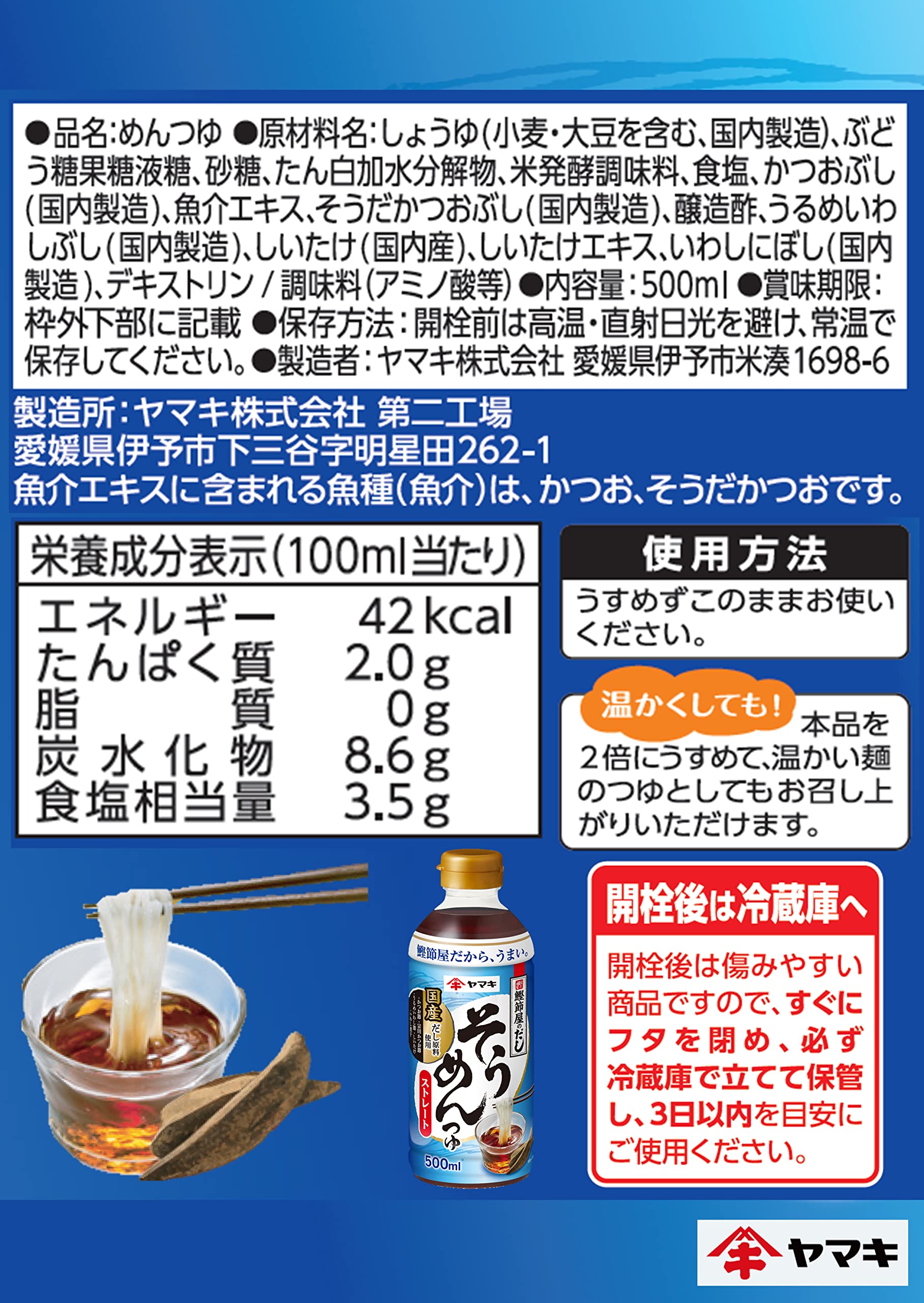 ヤマキ ストレートそうめんつゆ500ml×4本