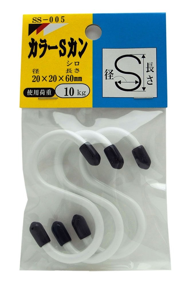 WAKI カラーSカン 径20mmX20mmX長さ60mm 3本入 白
