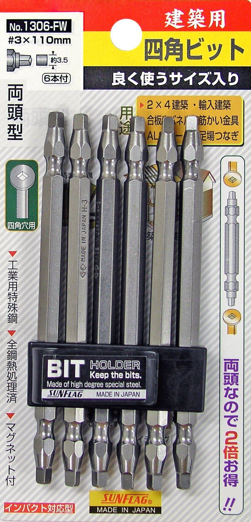 【新装セール】サンフラッグ(SUNFRAG) 四角ビット 6本組 ■#3×110 1306-FW