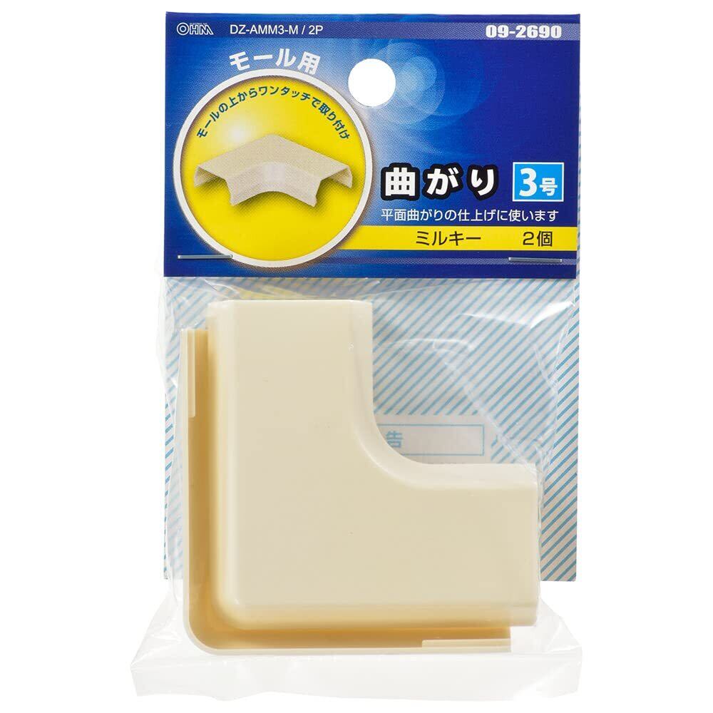 オーム電機 モール用曲がり 3号 ミルキー 2個入 配線モール コーナー 仕上げ まがり DZ-AMM3-M/2P 09-2690 OHM
