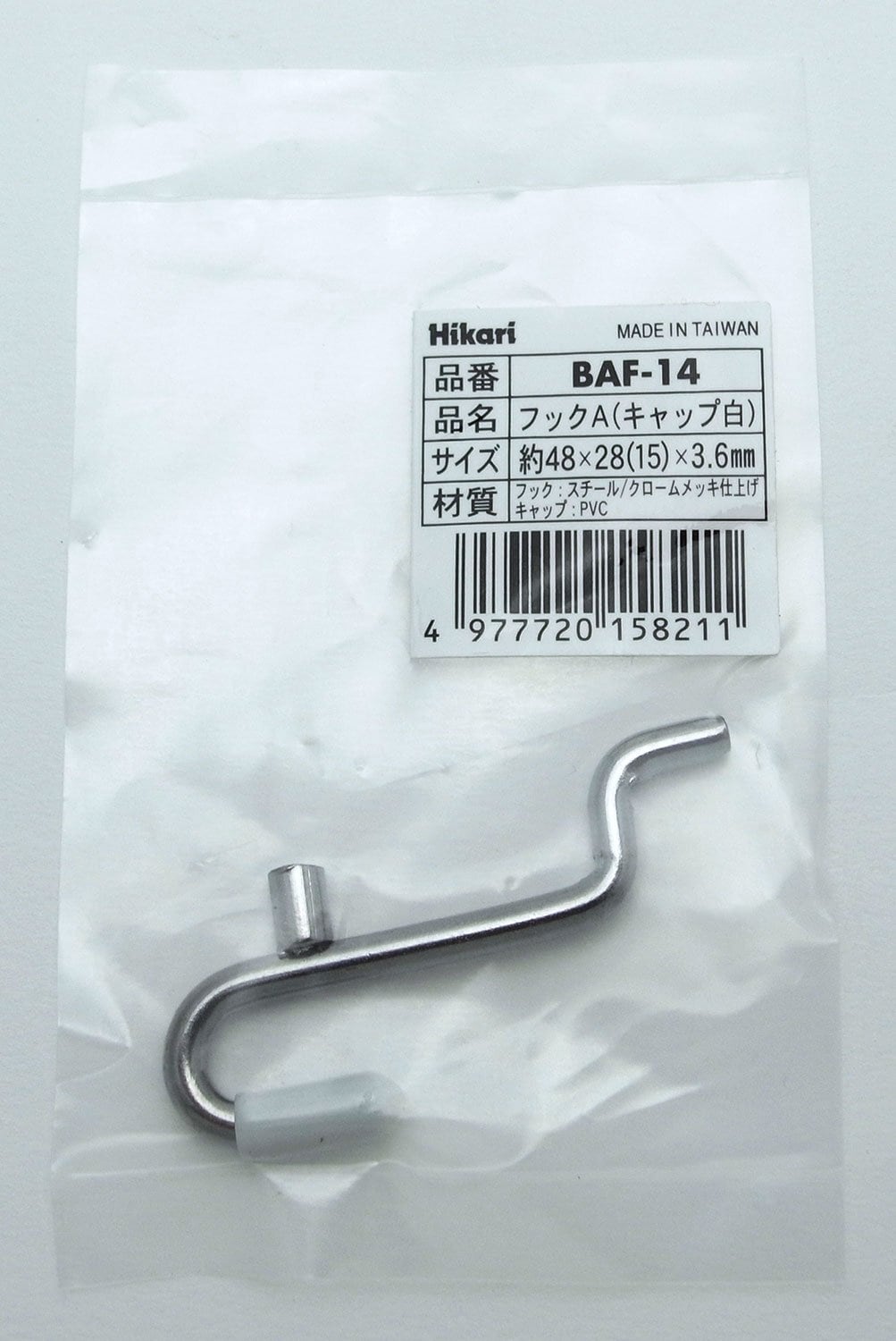 光 パンチングボード用 フックA(キャップ白) 48X28X3.6mm BAF-14