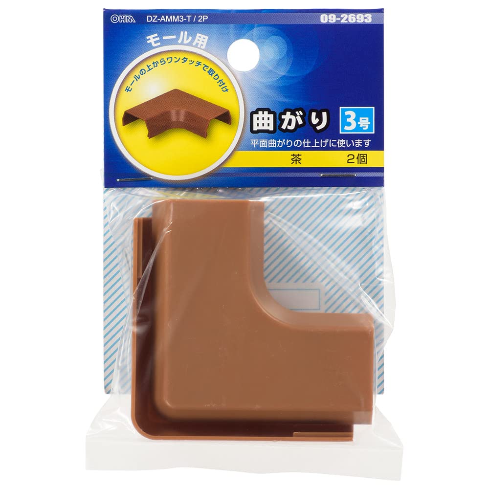 オーム(OHM) 電機 モール用曲がり 3号 茶 2個入 配線モール コーナー 仕上げ まがり DZ-AMM3-T/2P 09-2693
