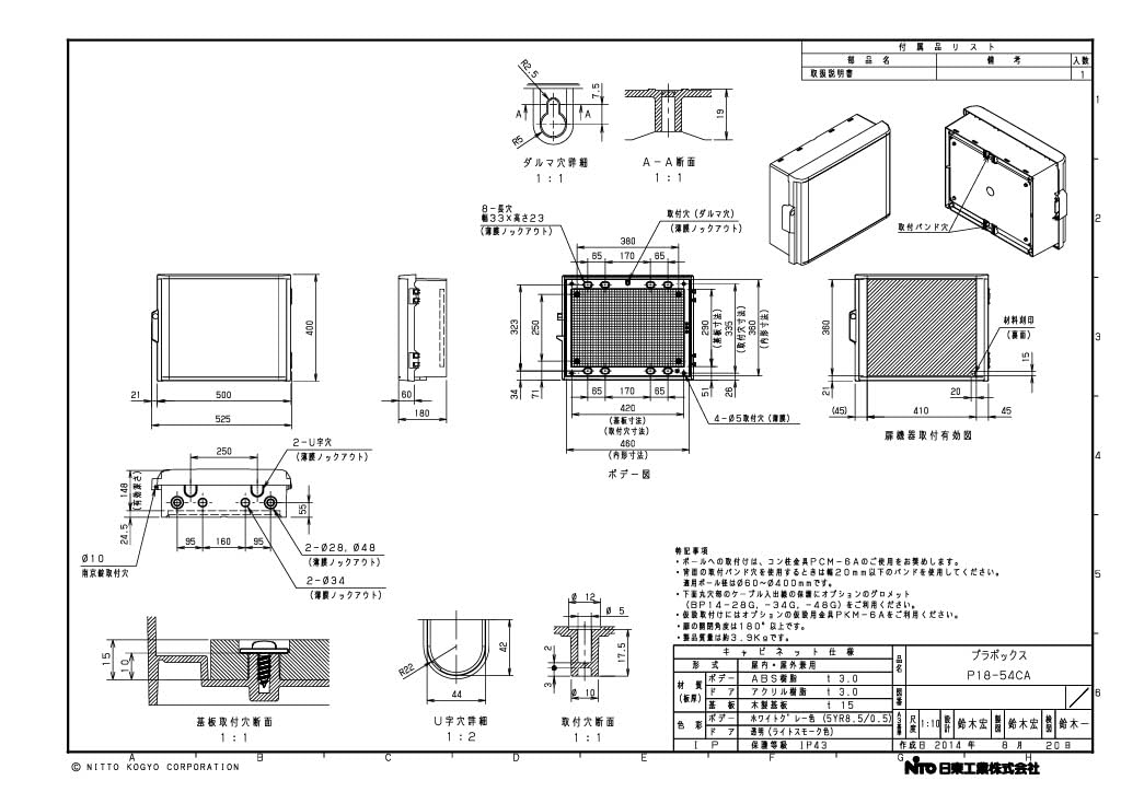 ●プラボックス(P)の透明扉タイプです。<br>●シンプルなデザイン、色彩でさまざまな取付場所に適しています。<br>●ポール取付用の取付バンド穴が付いています。<br>●底面と背面に配線穴用ノックアウトが付いています。<br>●樹脂製ですのでケースのアース工事が不要です。