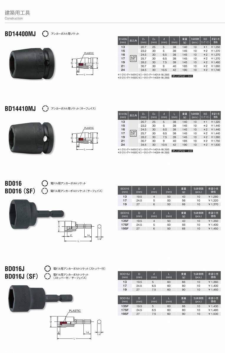 1/2(12.7mm)SQ. アンカーボルト用ソケット