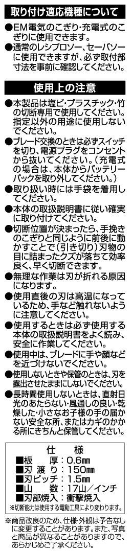 【大特価商品】高儀(Takagi) EARTH MAN 電気のこぎり・充電式のこぎり用 塩ビ・PC用替刃 150mm DNP-2