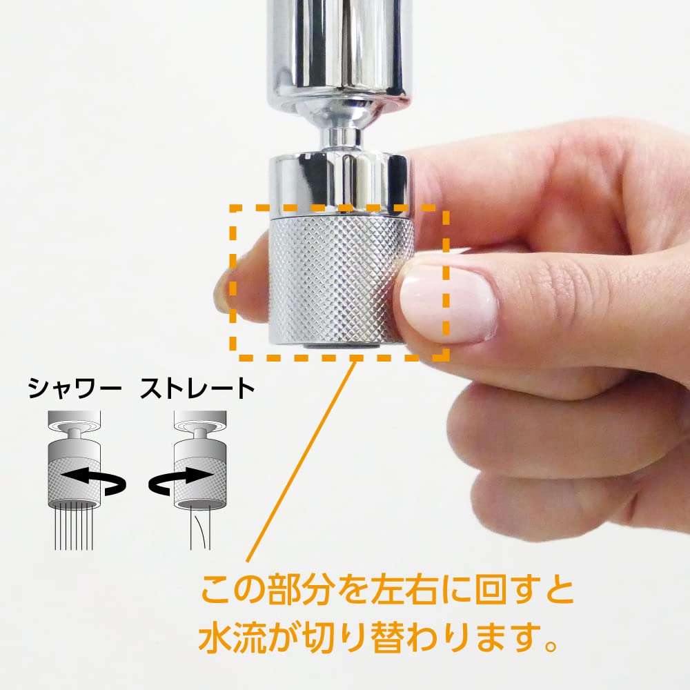 【水流切替可能】シャワー吐水とストレート吐水の切替がくるっと回すだけで簡単に出来ます。