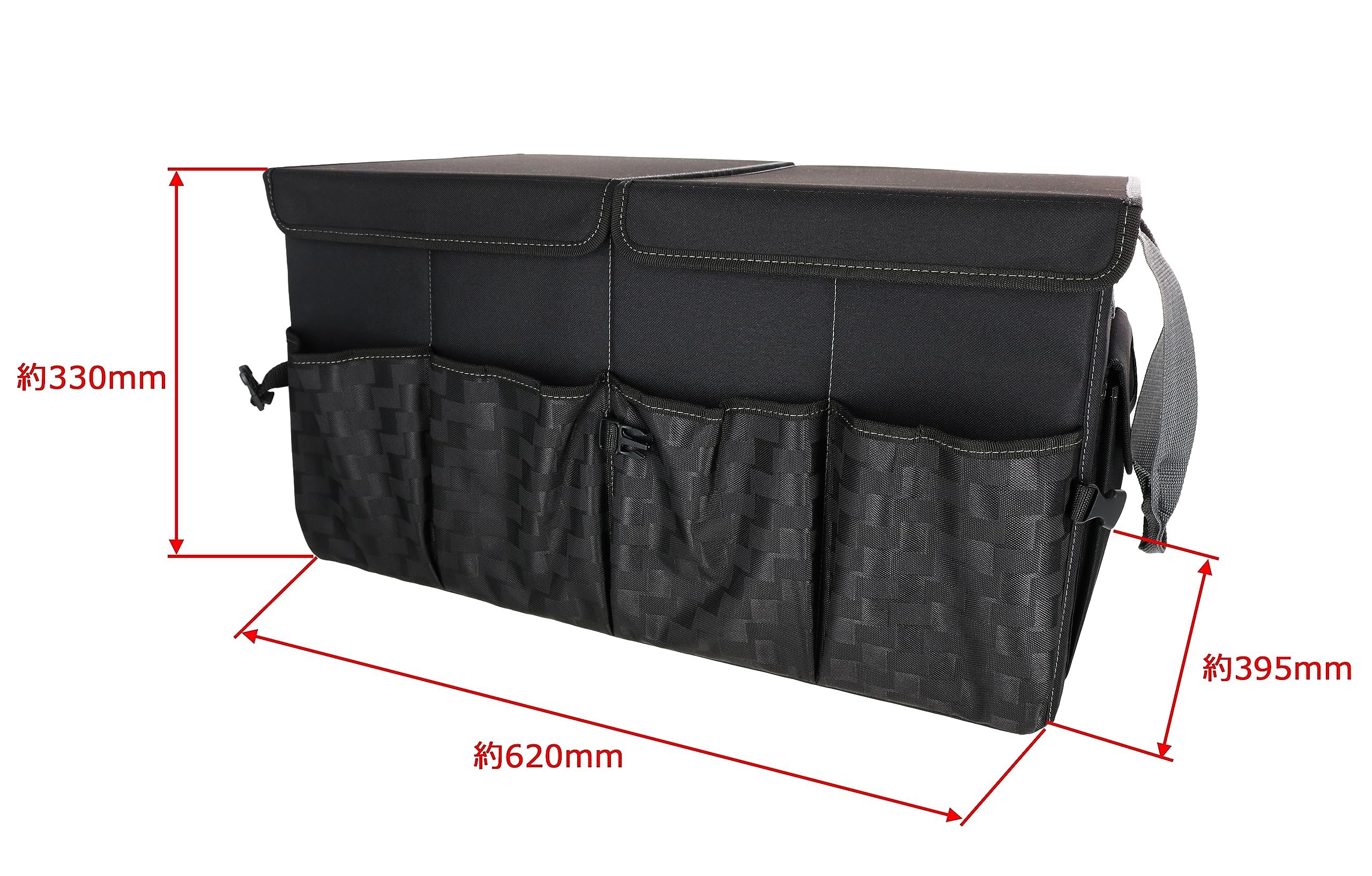 サイズ/外寸:約幅620×高さ330×奥行き395(mm)、1/2サイズ時外寸:約幅300×高さ330×奥行き395(mm)、本体内寸:約幅600×高さ300×奥行き360(mm)、収納時外寸:約幅120×高さ320×奥行き395(mm)