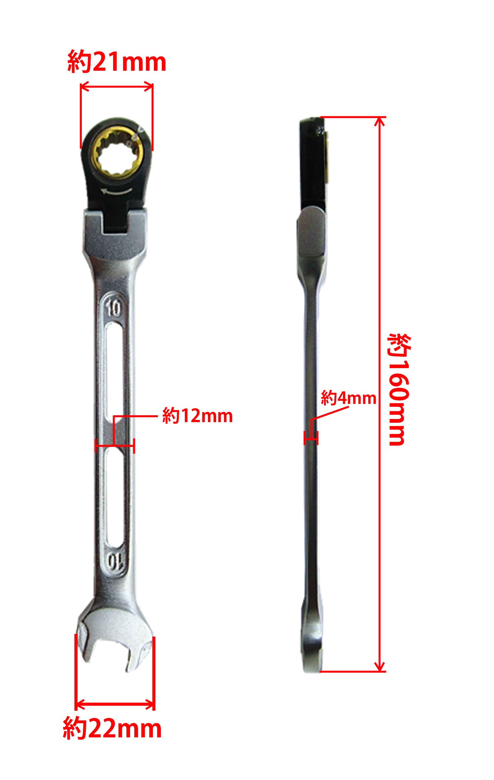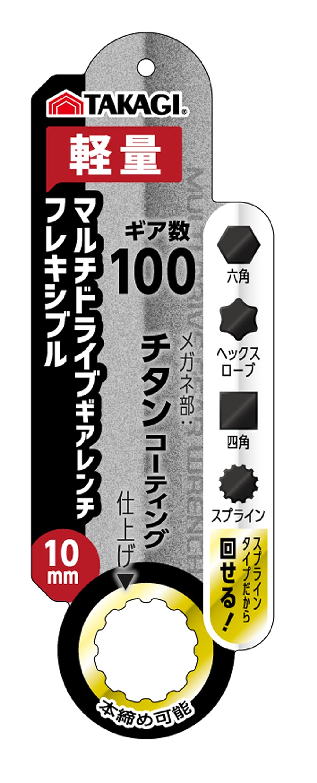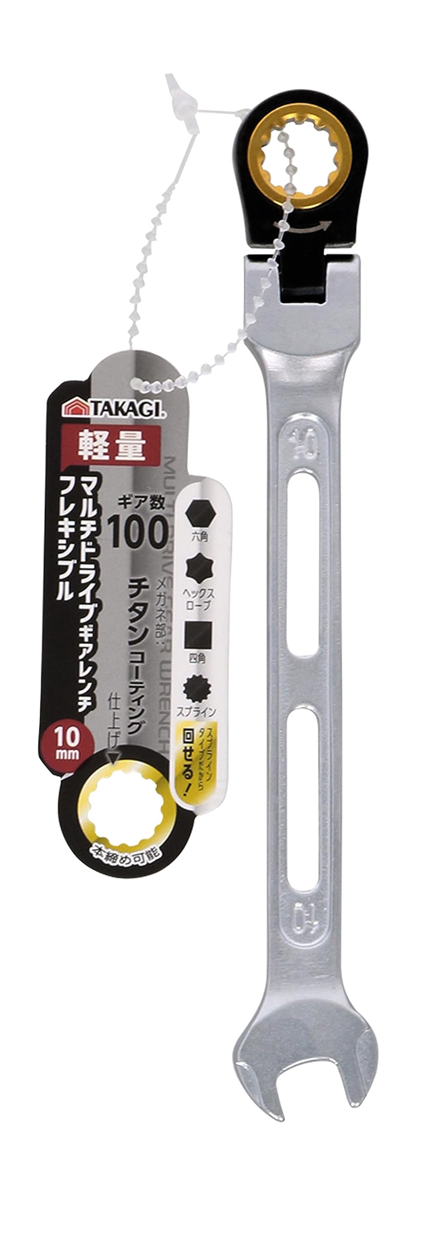 高儀(Takagi) マルチ ドライブ ギア レンチ フレキシブル 10mm ラチェットレンチ 首振り180° ギア数100 本締め 軽量 作業工具 ボルト ナット 締めつけ ゆるめ