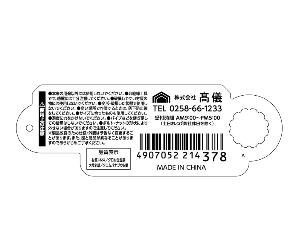 材質:本体/クロム合金鋼、メガネ部/クロムバナジウム鋼