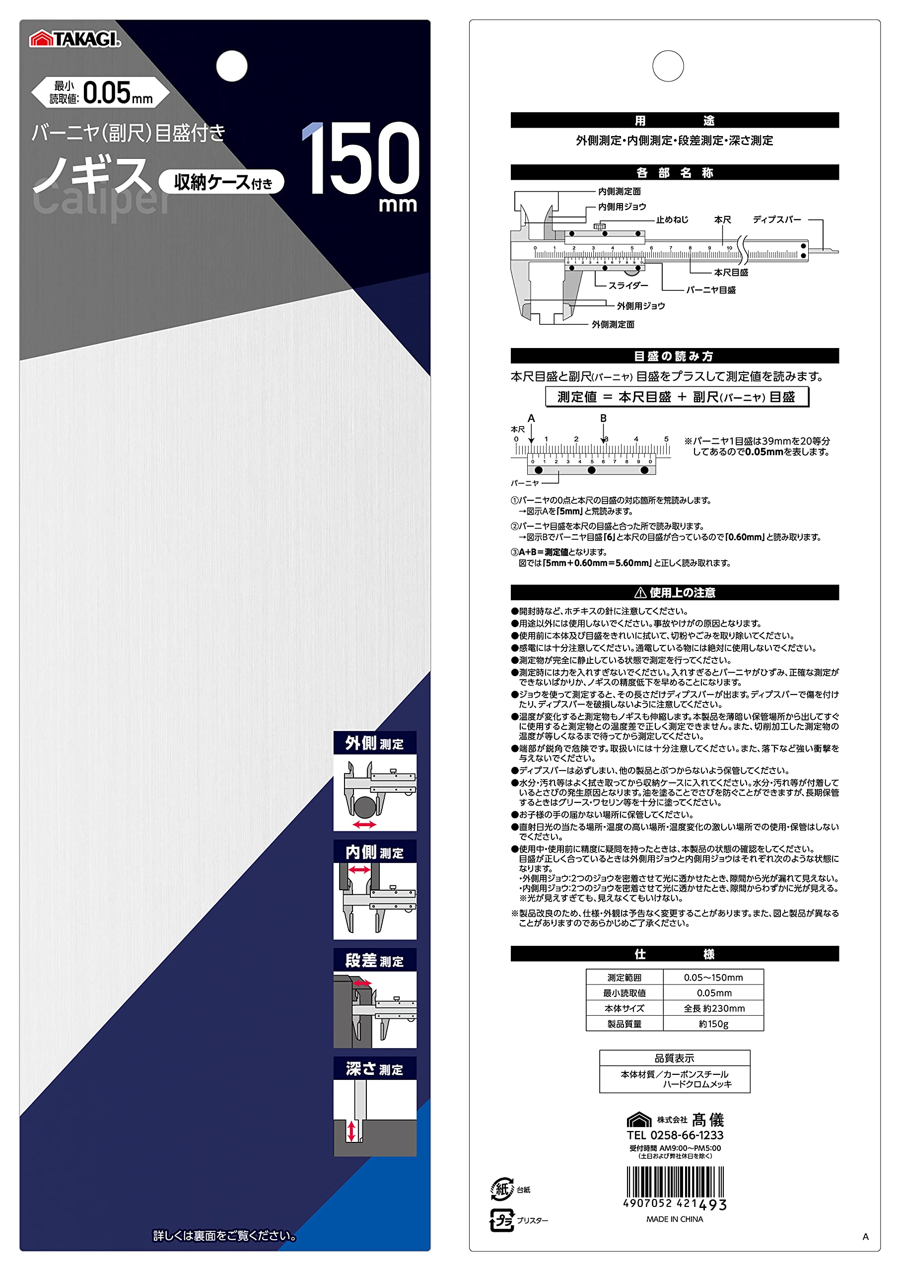 高儀(Takagi) ノギス 150mm 収納ケース付き