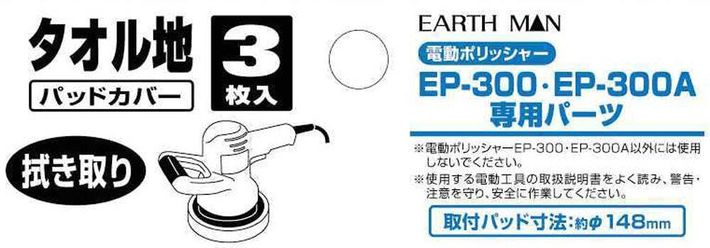 高儀(Takagi) EARTH MAN 電動ポリッシャー用 パッドカバー タオル地 3枚入