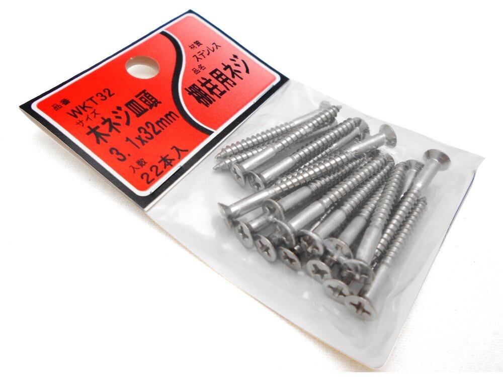 ●3.1mm×32mmの木ネジ皿頭です。●キリで、下穴を開けておくと締付けが楽になります。